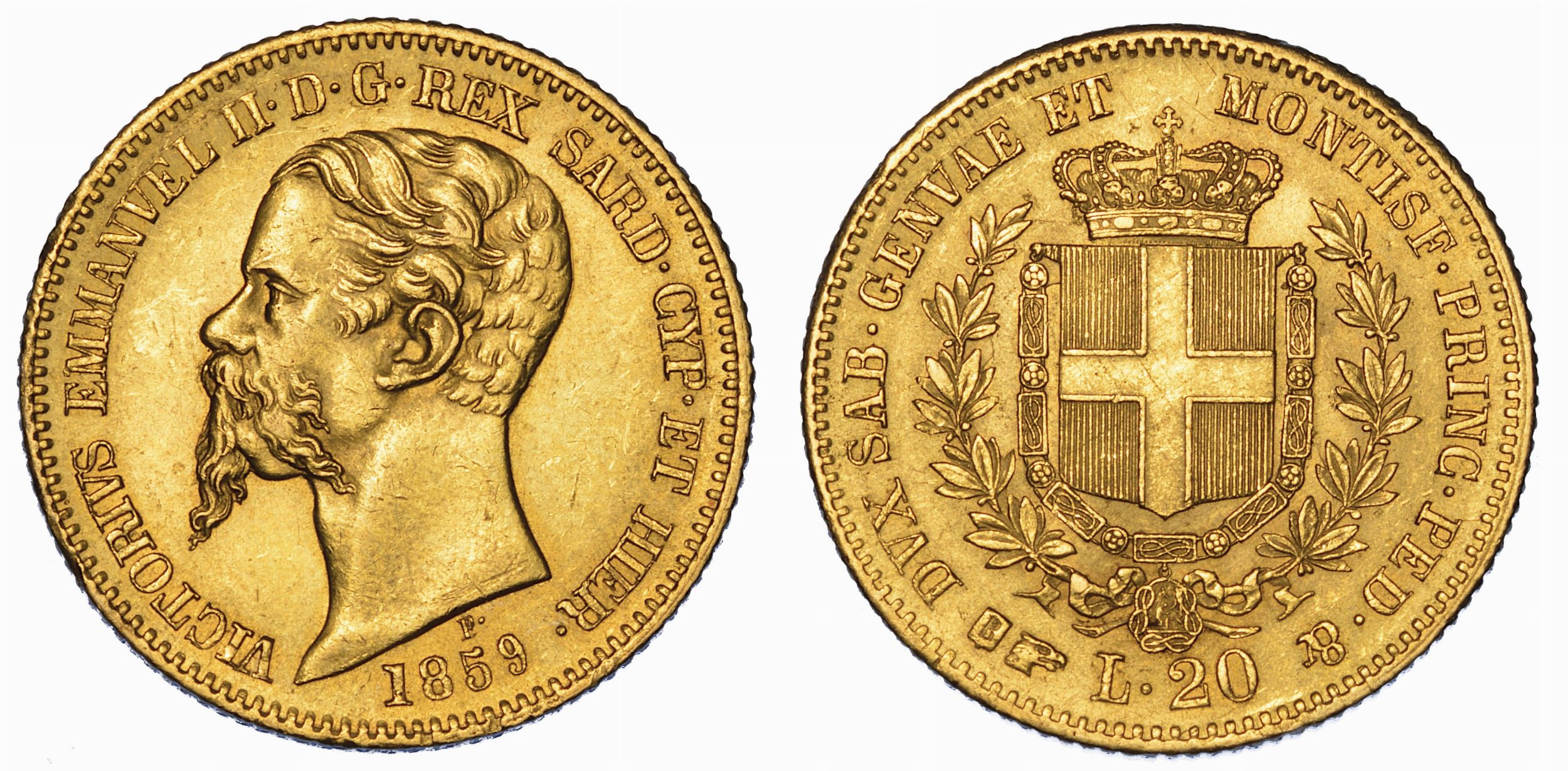 REGNO DI SARDEGNA. VITTORIO EMANUELE II DI SAVOIA, 1849-1861. 20 Lire 1859. Tori [..]