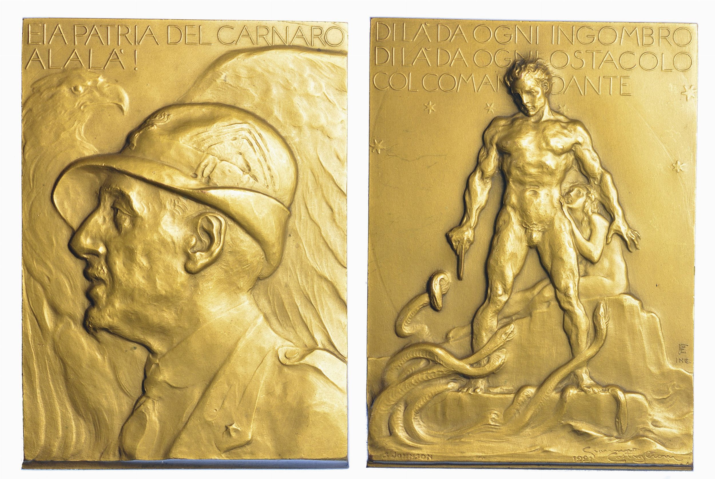 REGNO D’ITALIA. GABRIELE D’ANNUNZIO, 1863-1938. Placchetta in bronzo dorato 1921 [..]
