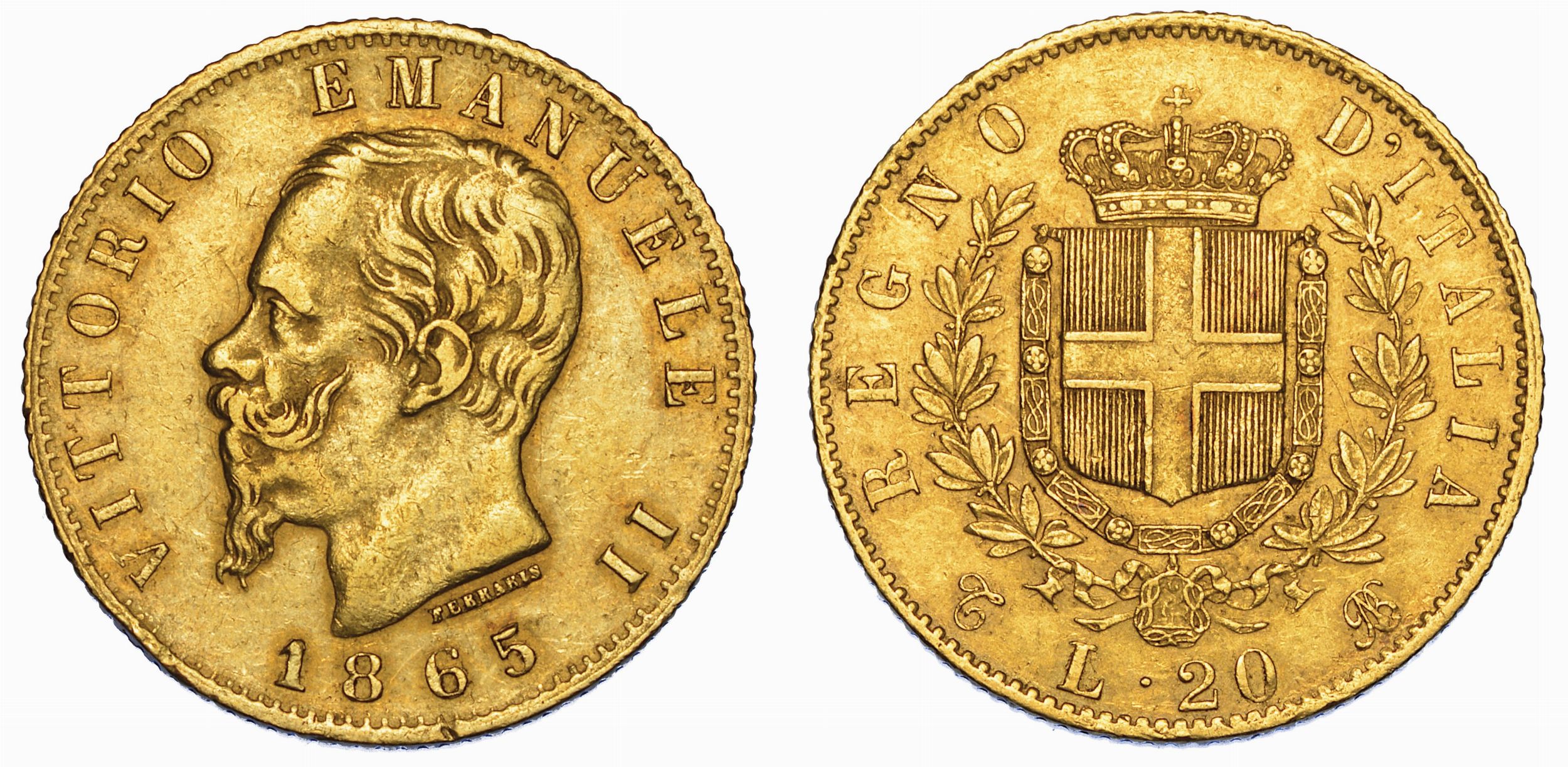 REGNO D'ITALIA. VITTORIO EMANUELE II DI SAVOIA, 1861-1878. 20 Lire 1865. Torino.