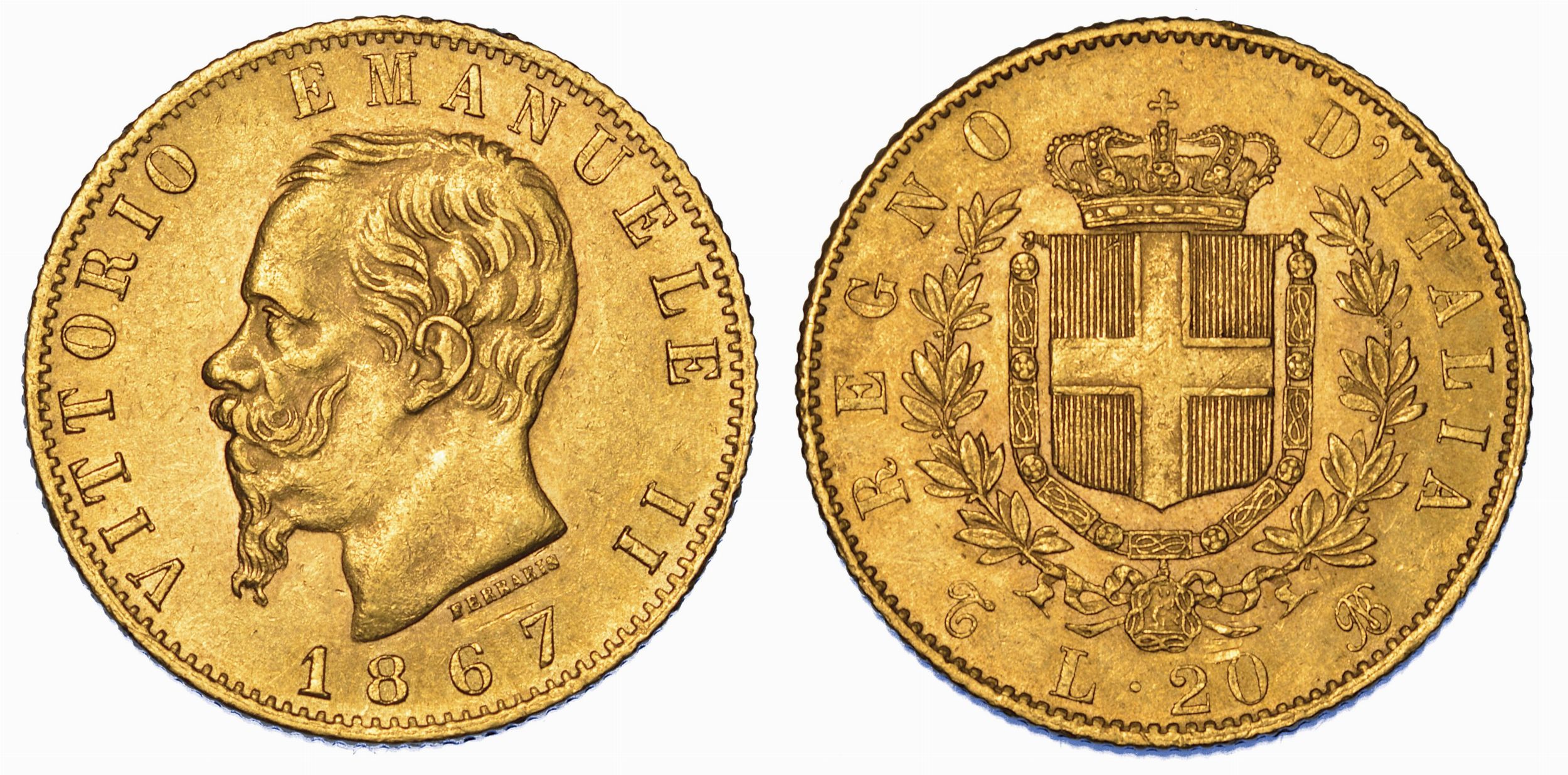 REGNO D'ITALIA. VITTORIO EMANUELE II DI SAVOIA, 1861-1878. 20 Lire 1867. Torino.