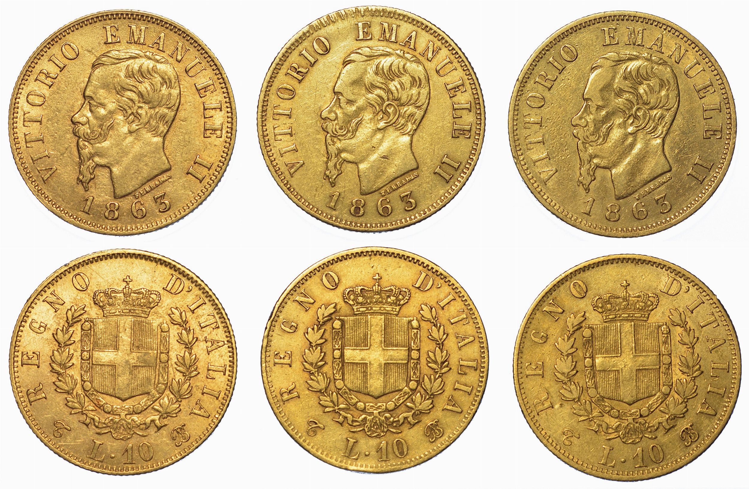 REGNO D'ITALIA. VITTORIO EMANUELE II DI SAVOIA, 1861-1878. Lotto di tre monete.