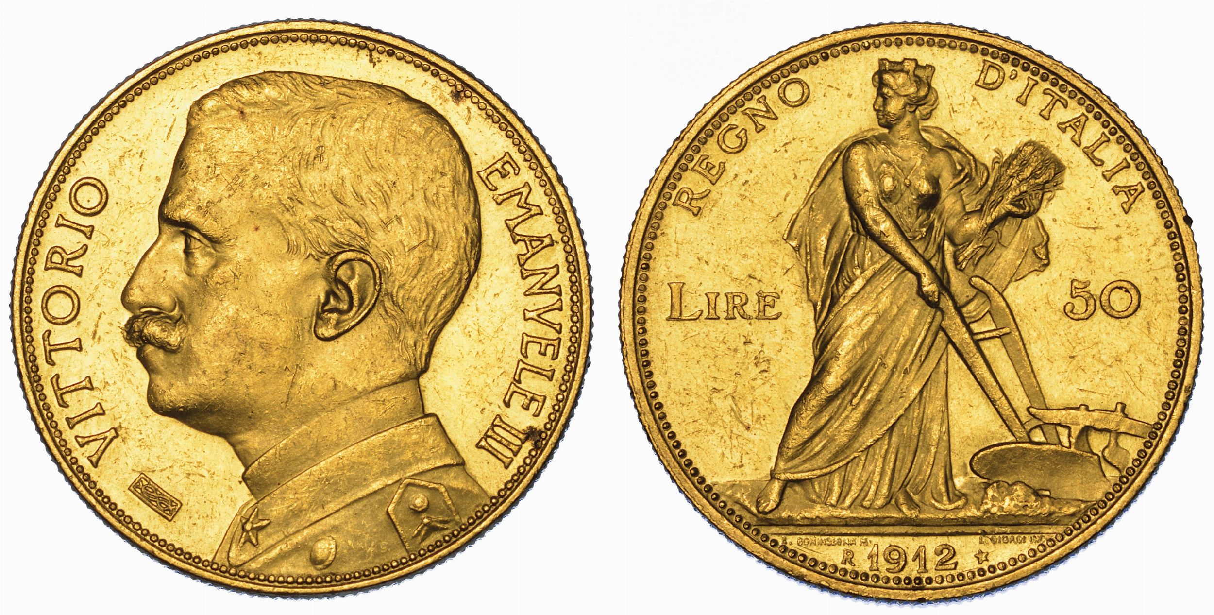 REGNO D'ITALIA. VITTORIO EMANUELE III DI SAVOIA, 1900-1946. 50 Lire 1912. Aratri [..]