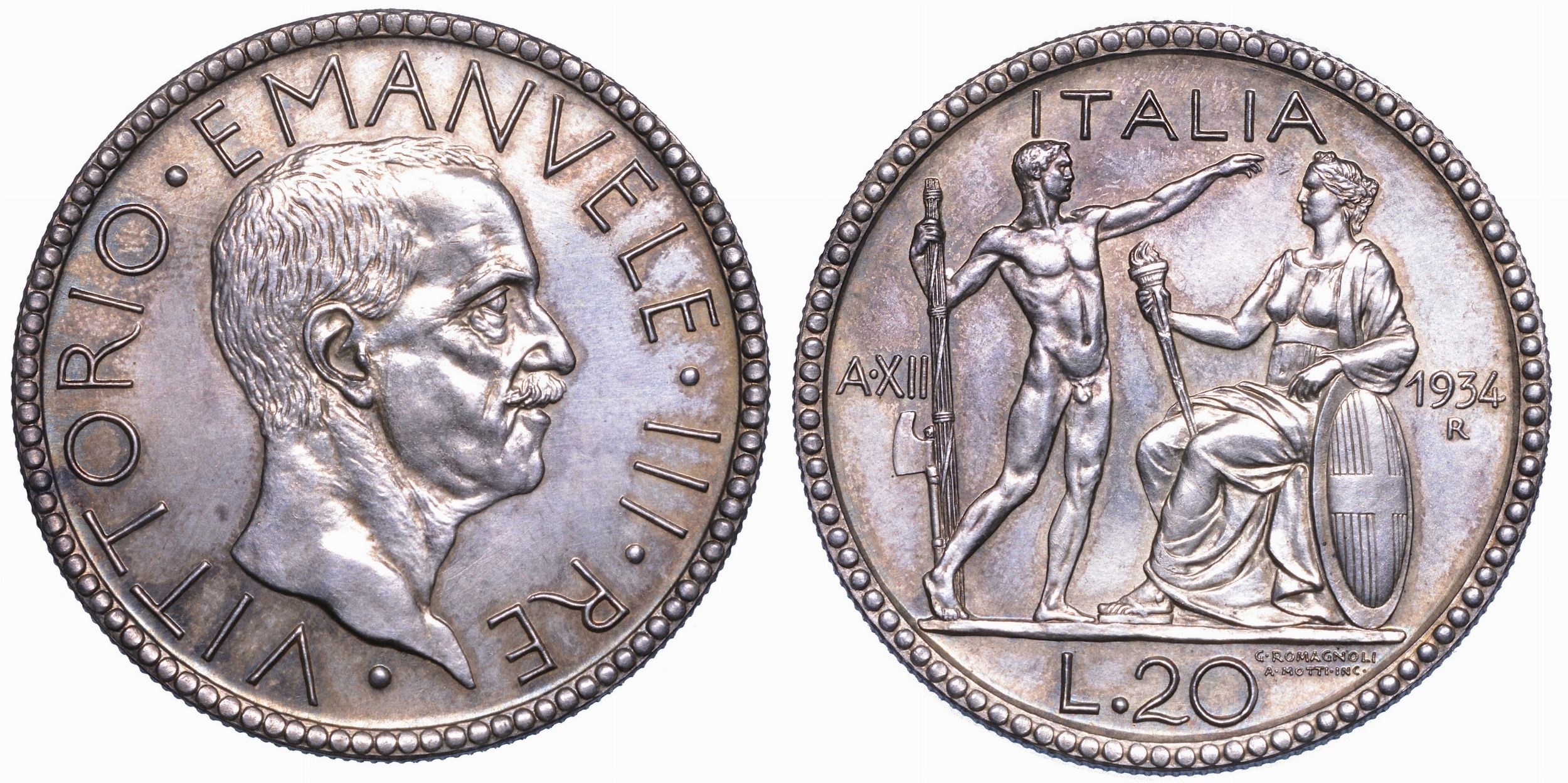 REGNO D’ITALIA. VITTORIO EMANUELE III DI SAVOIA, 1900-1946. 20 lire 1934/XII. Littore. [..]