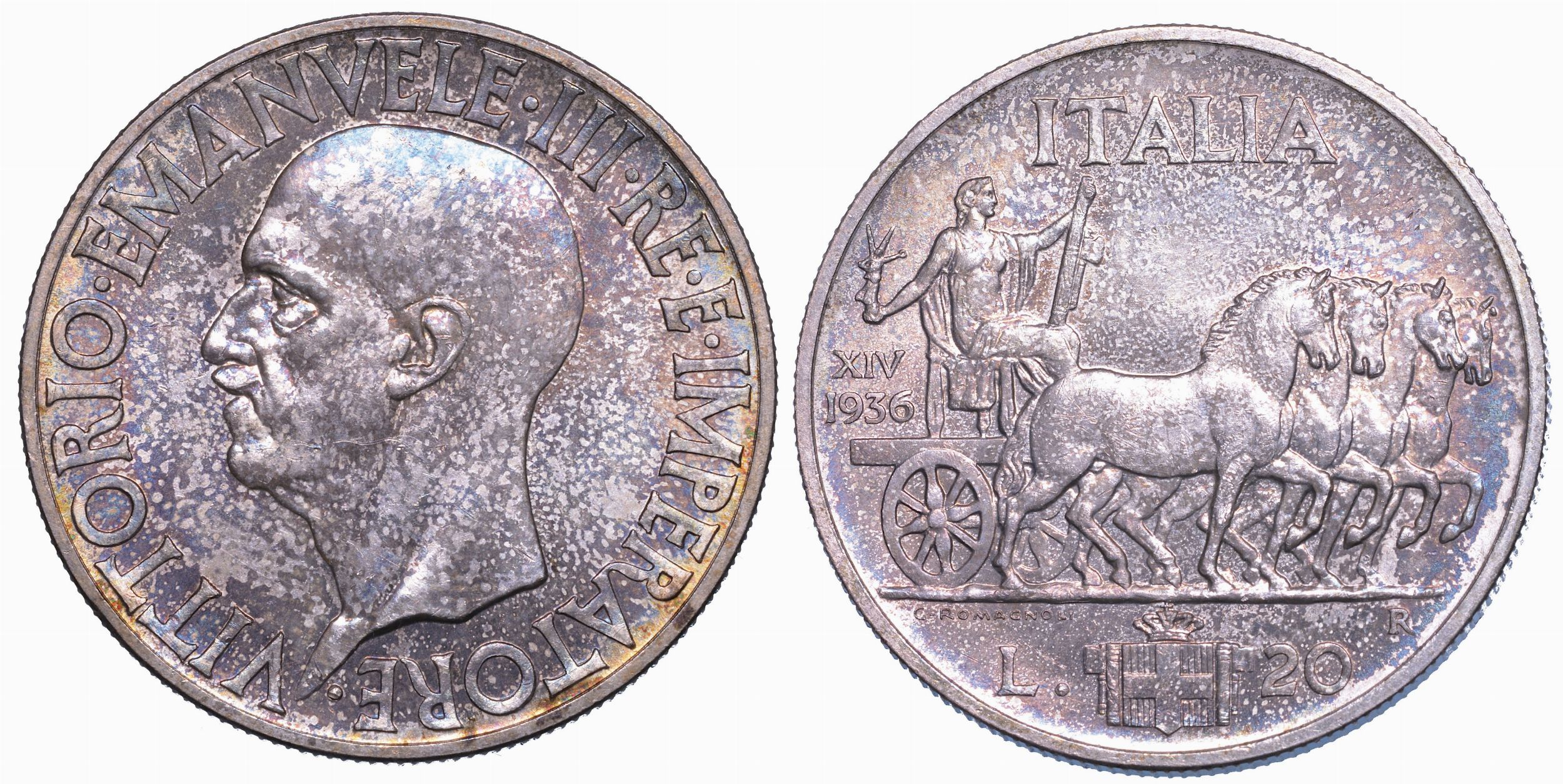REGNO D’ITALIA. VITTORIO EMANUELE III DI SAVOIA, 1900-1946. 20 Lire 1936/A. XIV. [..]
