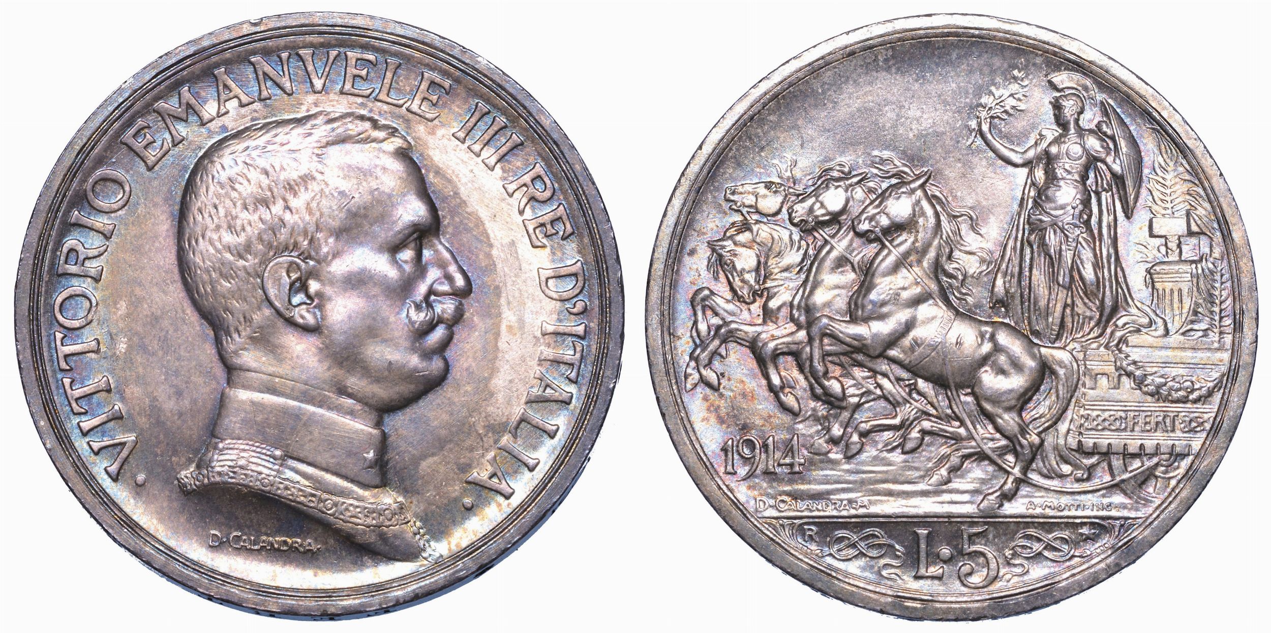 REGNO D’ITALIA. VITTORIO EMANUELE III DI SAVOIA, 1900-1946. 5 Lire 1914. Quadriga [..]