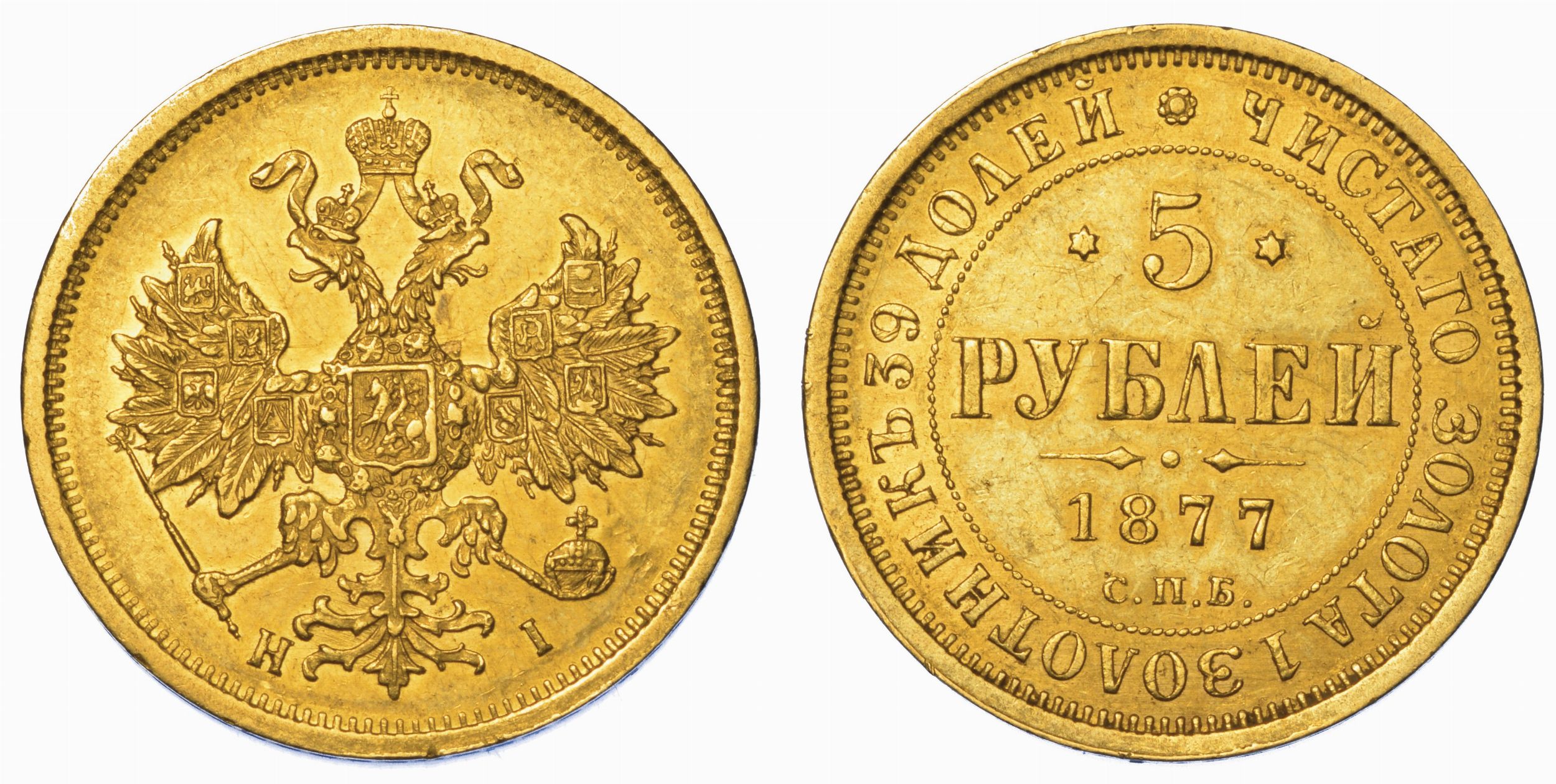 RUSSIA. ALEKSANDR II, 1855-1881. 5 Rubli 1877. San Pietroburgo.