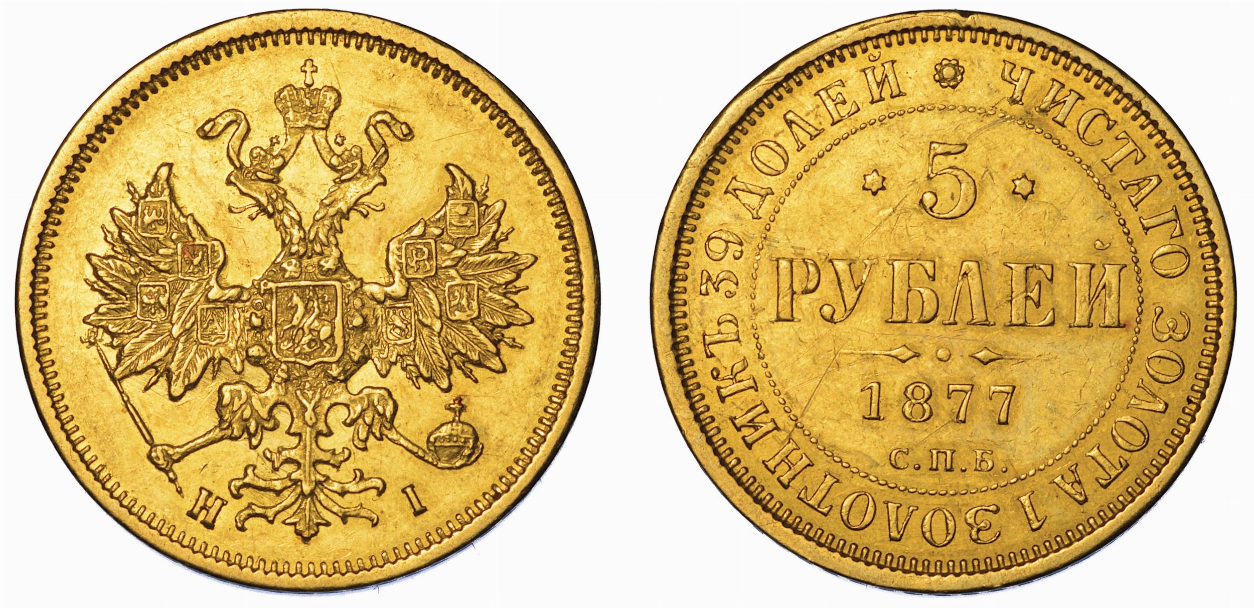 RUSSIA. ALEKSANDR II, 1855-1881. 5 Rubli 1877. San Pietroburgo.