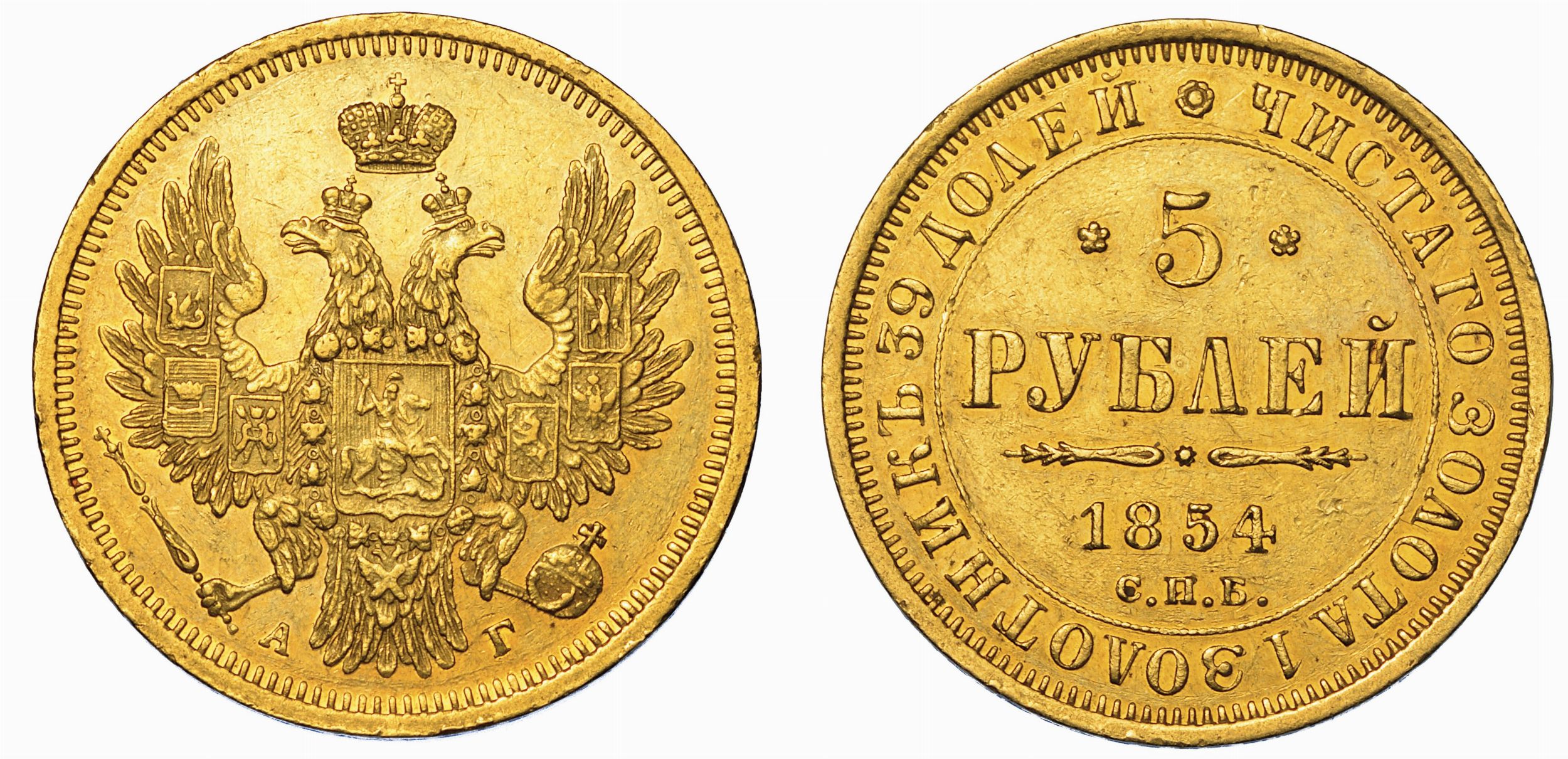 RUSSIA.NIKOLAJ I, 1825-1855. 5 Rubli 1854. San Pietroburgo.