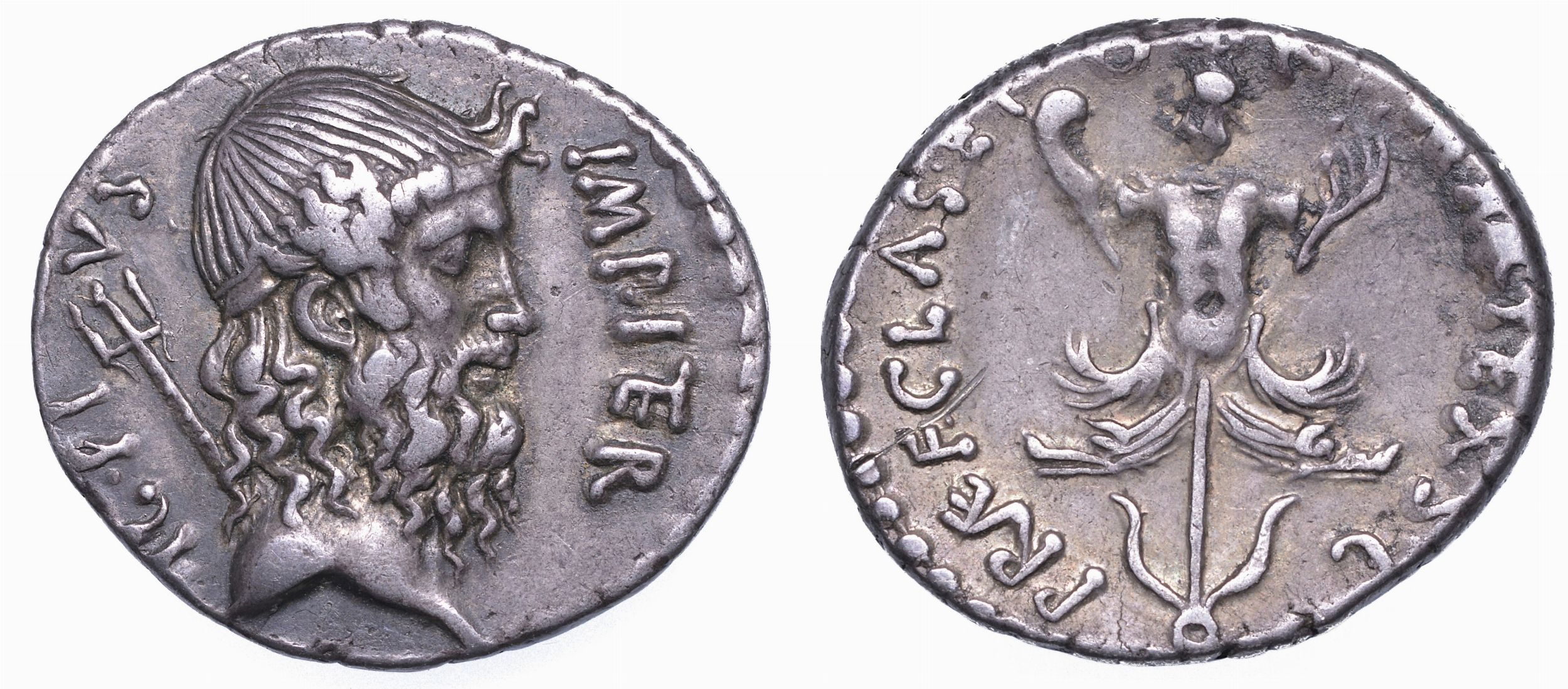 SESTO POMPEO. Denario, anni 37-36 a.C. Sicilia.