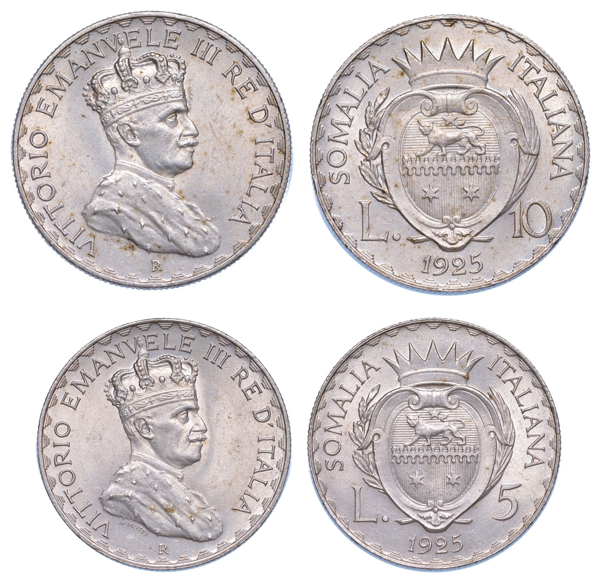 SOMALIA ITALIANA. VITTORIO EMANUELE III DI SAVOIA, 1909-1925. Lotto di due monet [..]