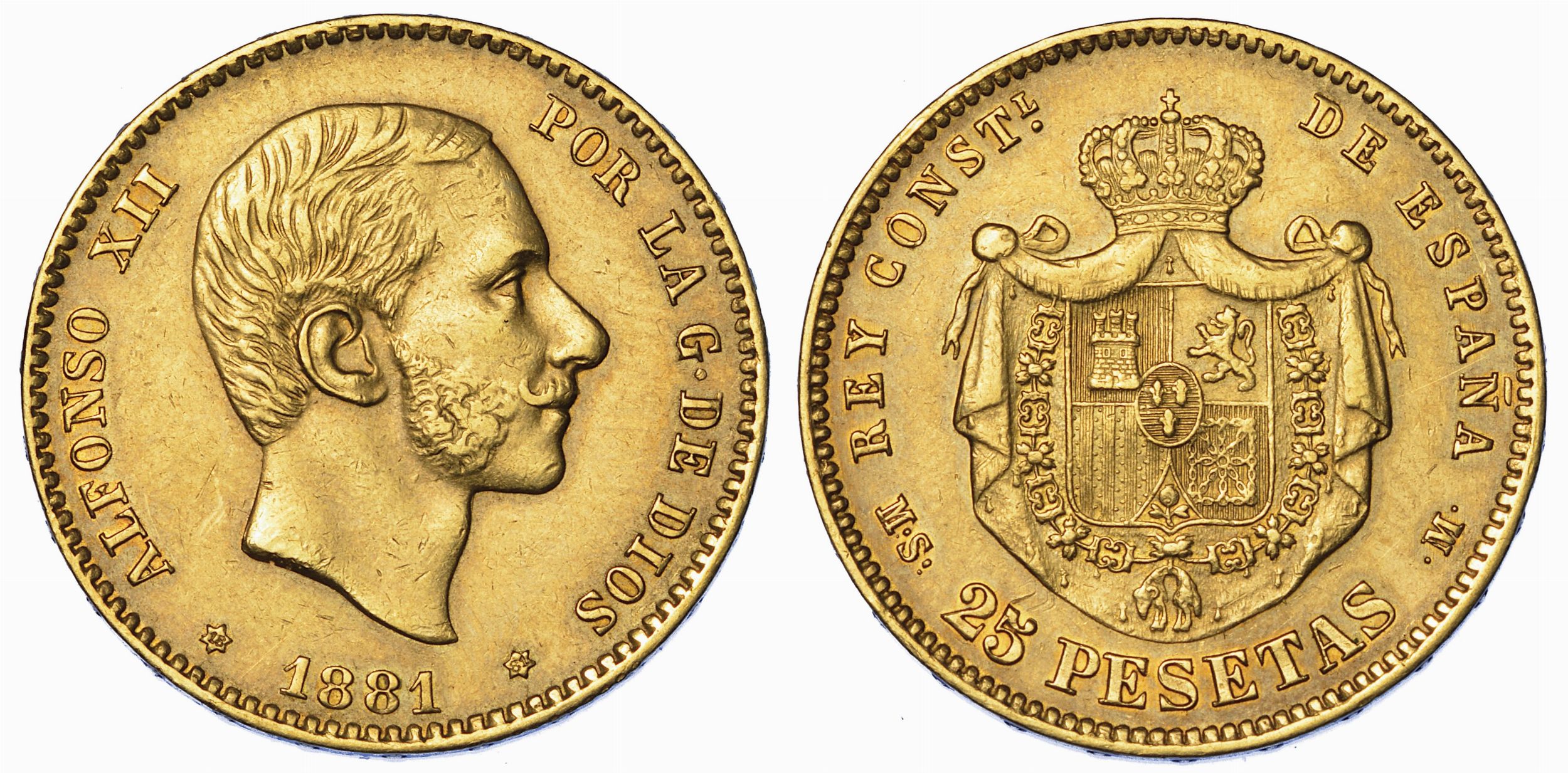 SPAGNA. ALFONSO XII, 1874-1885. 25 Pesetas 1881.