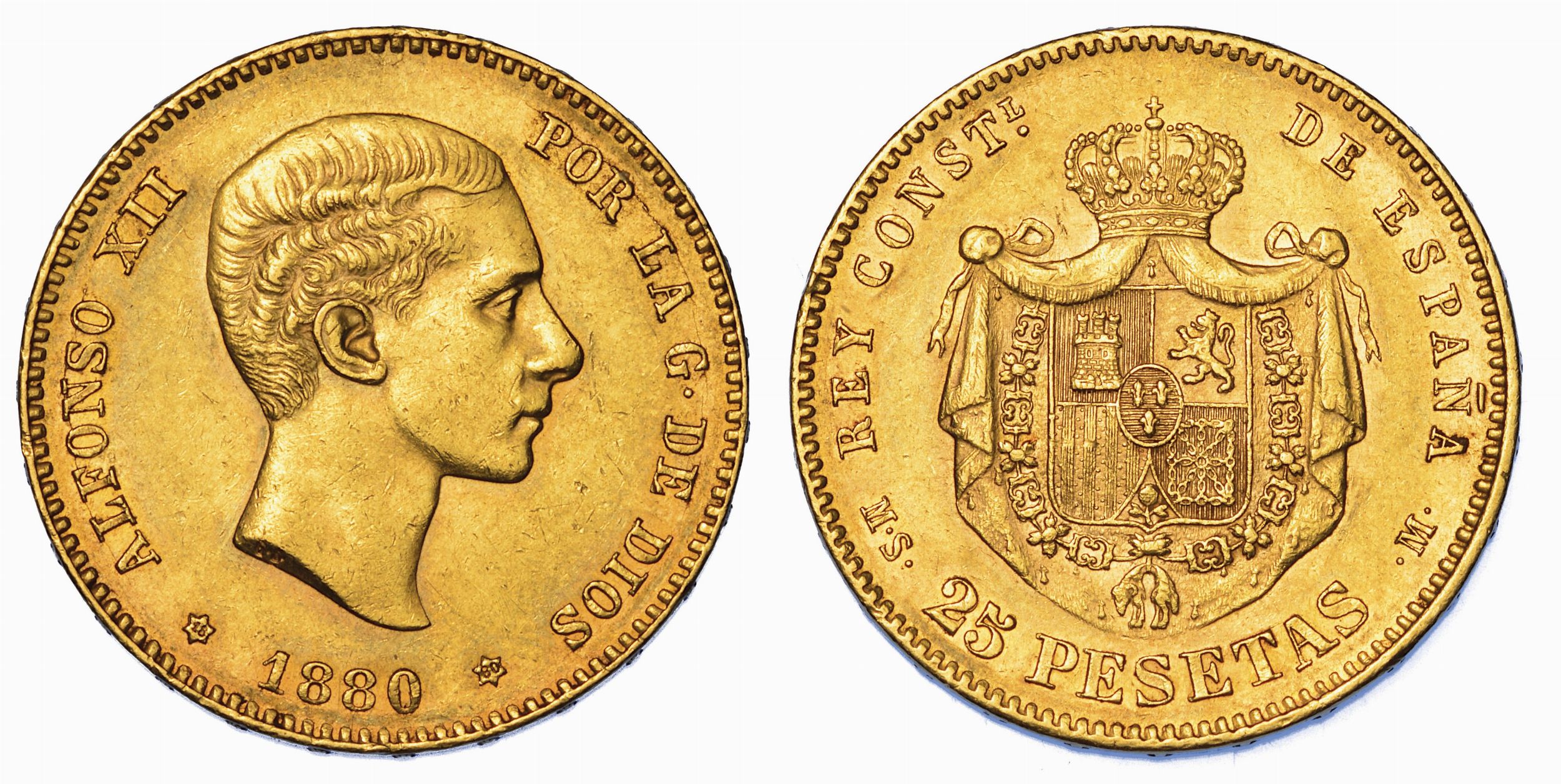 SPAGNA. ALFONSO XII, 1874-1885. 25 Pesetas 1880.