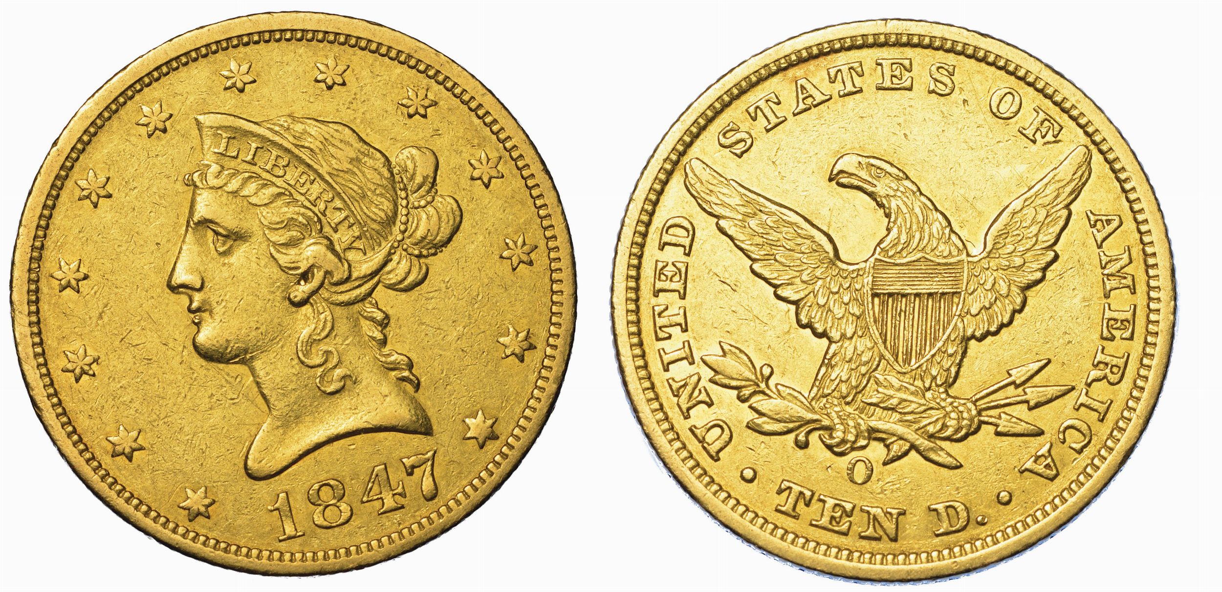 USA. REPUBLIC. 10 Dollars “Liberty Head” 1847. Zecca di New Orleans, Louisiana.