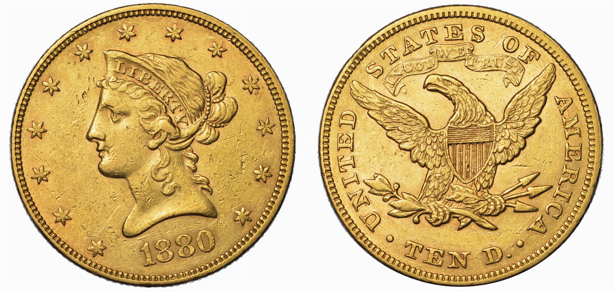USA. REPUBLIC. 10 Dollars “Liberty Head” 1880. Zecca di Philadephia, Pennsylvani [..]