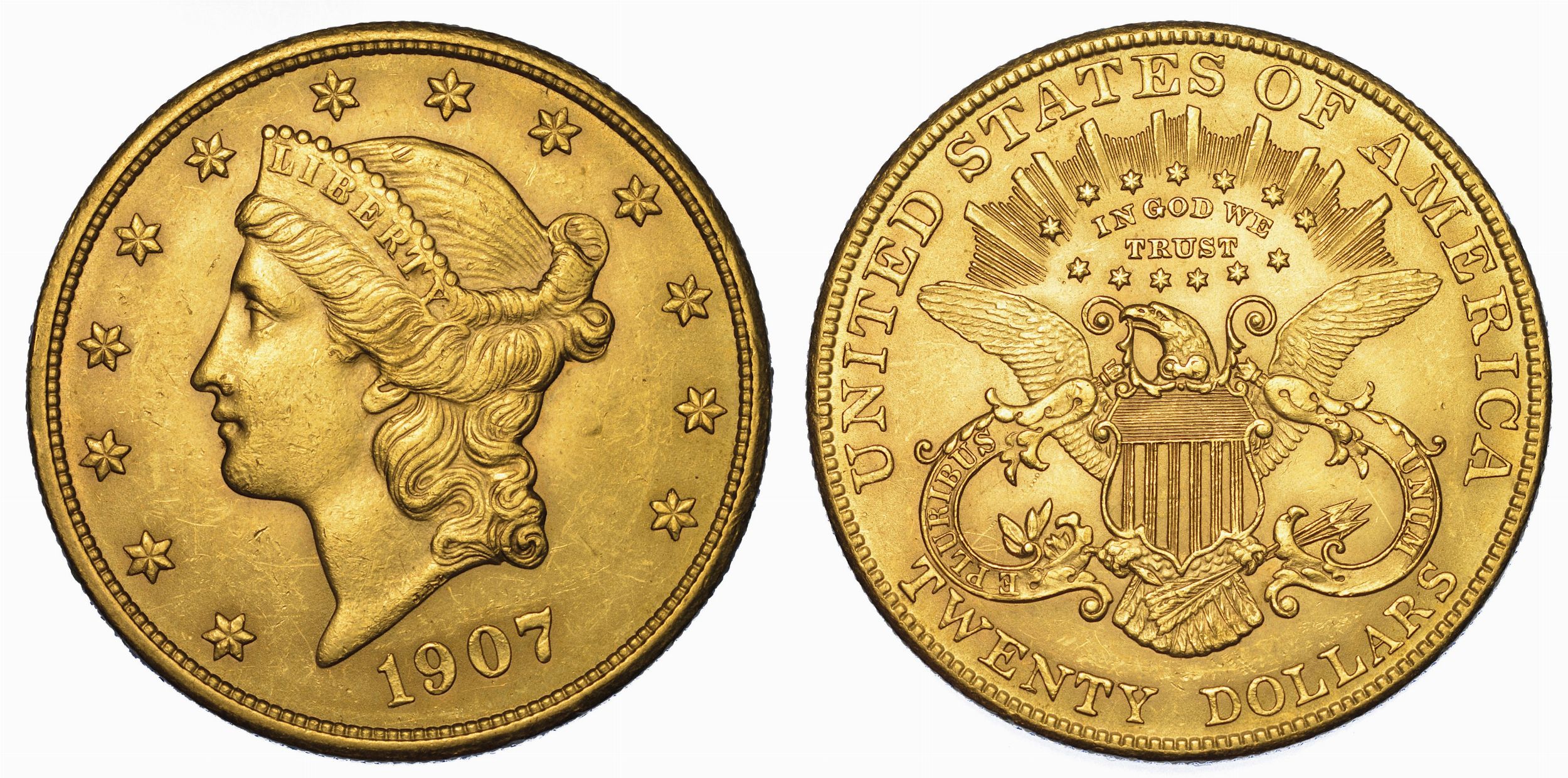 USA. REPUBLIC. 20 Dollars “Liberty Head” 1907. Zecca di Philadephia, Pennsylvani [..]