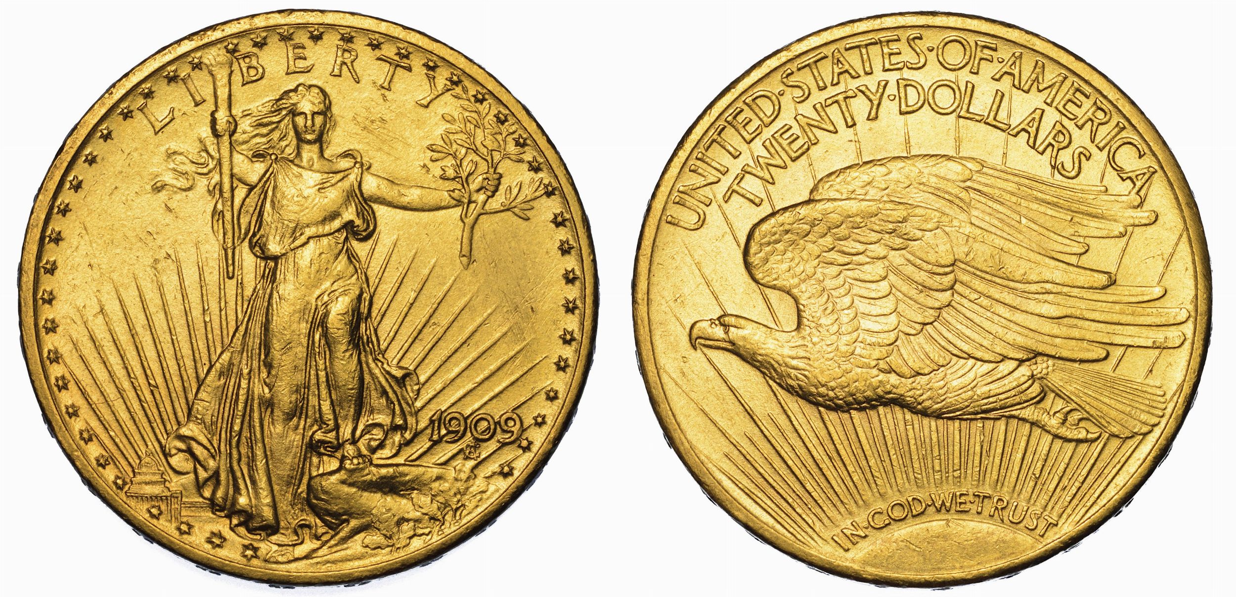 USA. REPUBLIC. 20 Dollars “St. Gaudens” 1909. Zecca di Philadephia, Pennsylvania [..]