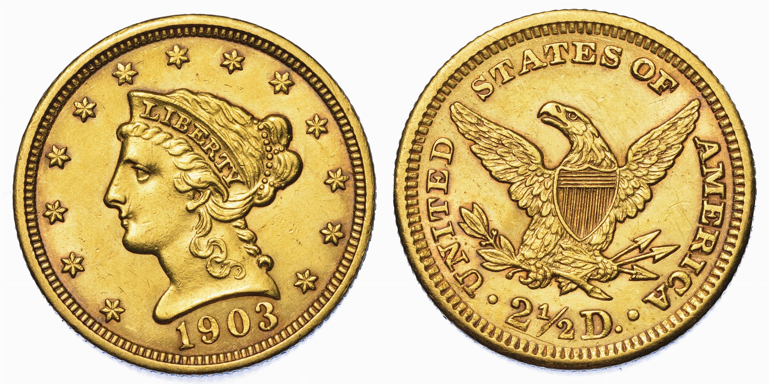 USA. REPUBLIC. 2,5 Dollars “Coronet Head” 1903. Zecca di Philadephia, Pennsylvan [..]