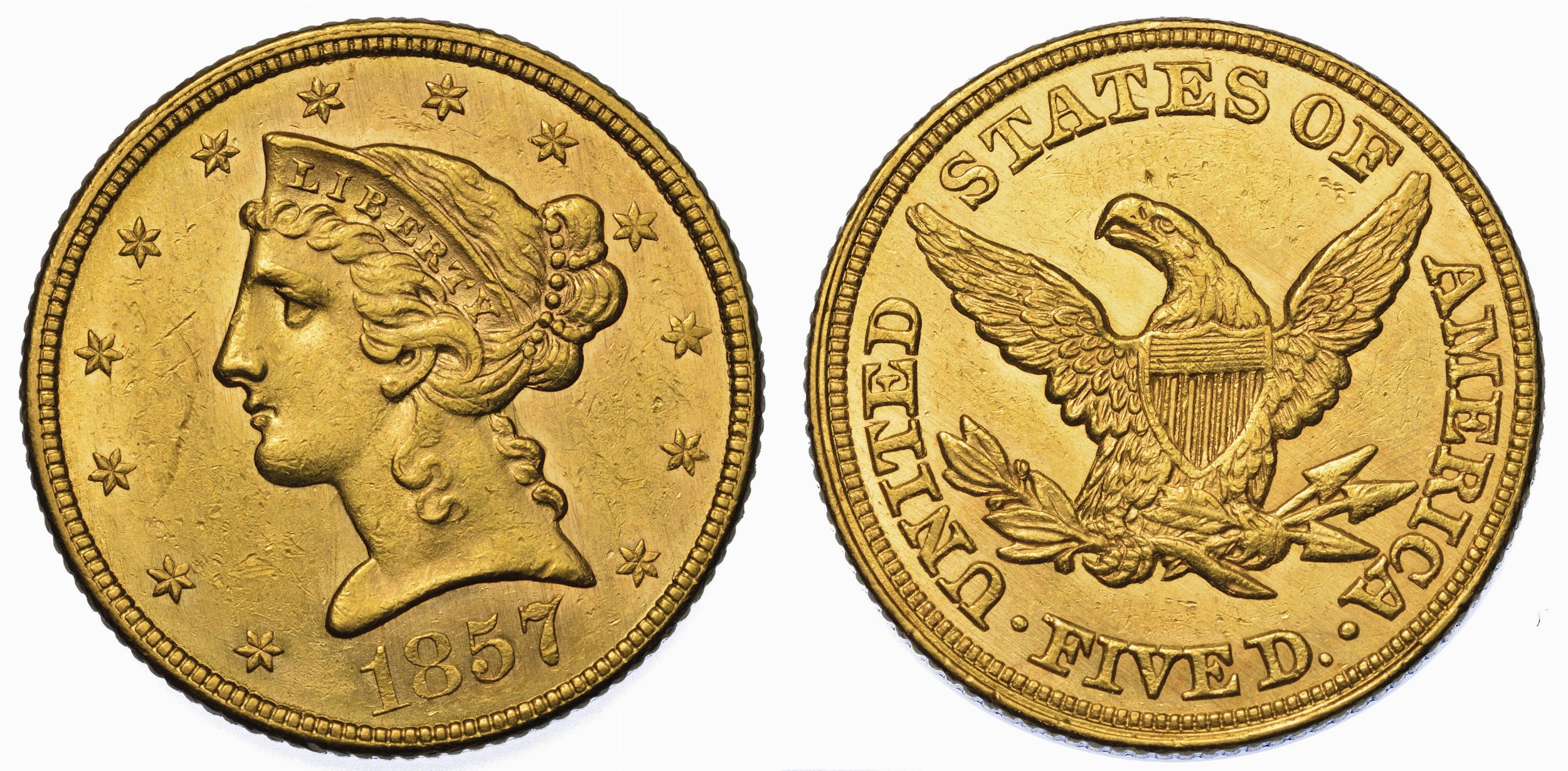 USA. REPUBLIC. 5 Dollars “Coronet Head” 1857. Zecca di Philadephia, Pennsylvania [..]