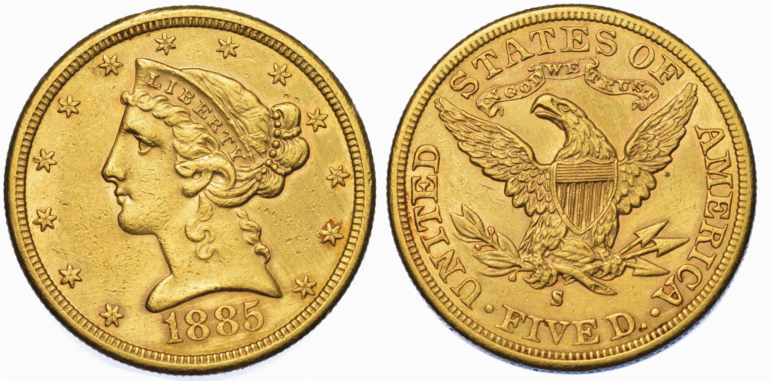 USA. REPUBLIC. 5 Dollars “Coronet Head” 1885. Zecca di San Francisco, California [..]