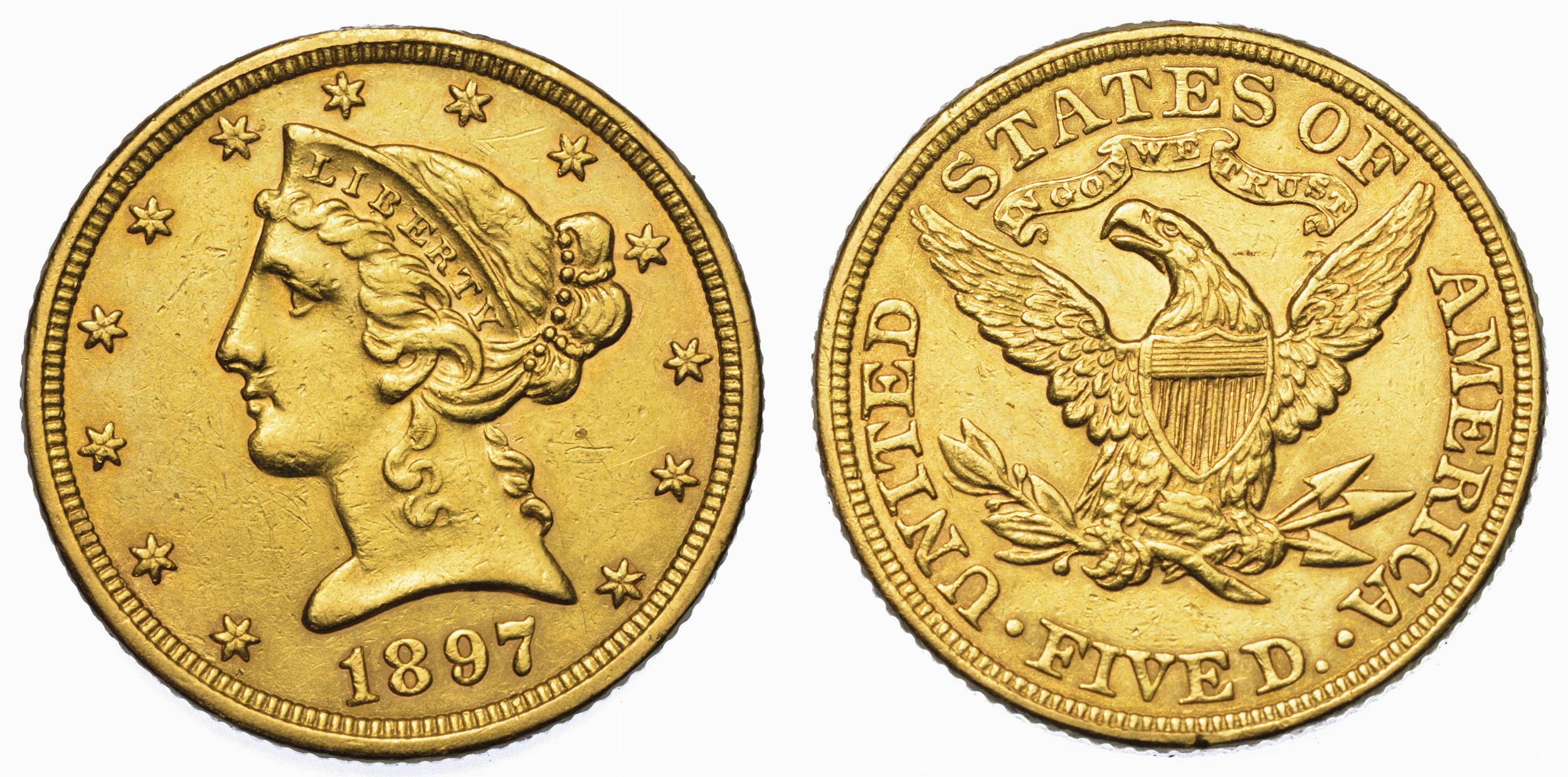 USA. REPUBLIC. 5 Dollars “Coronet Head” 1897. Zecca di Philadephia, Pennsylvania [..]