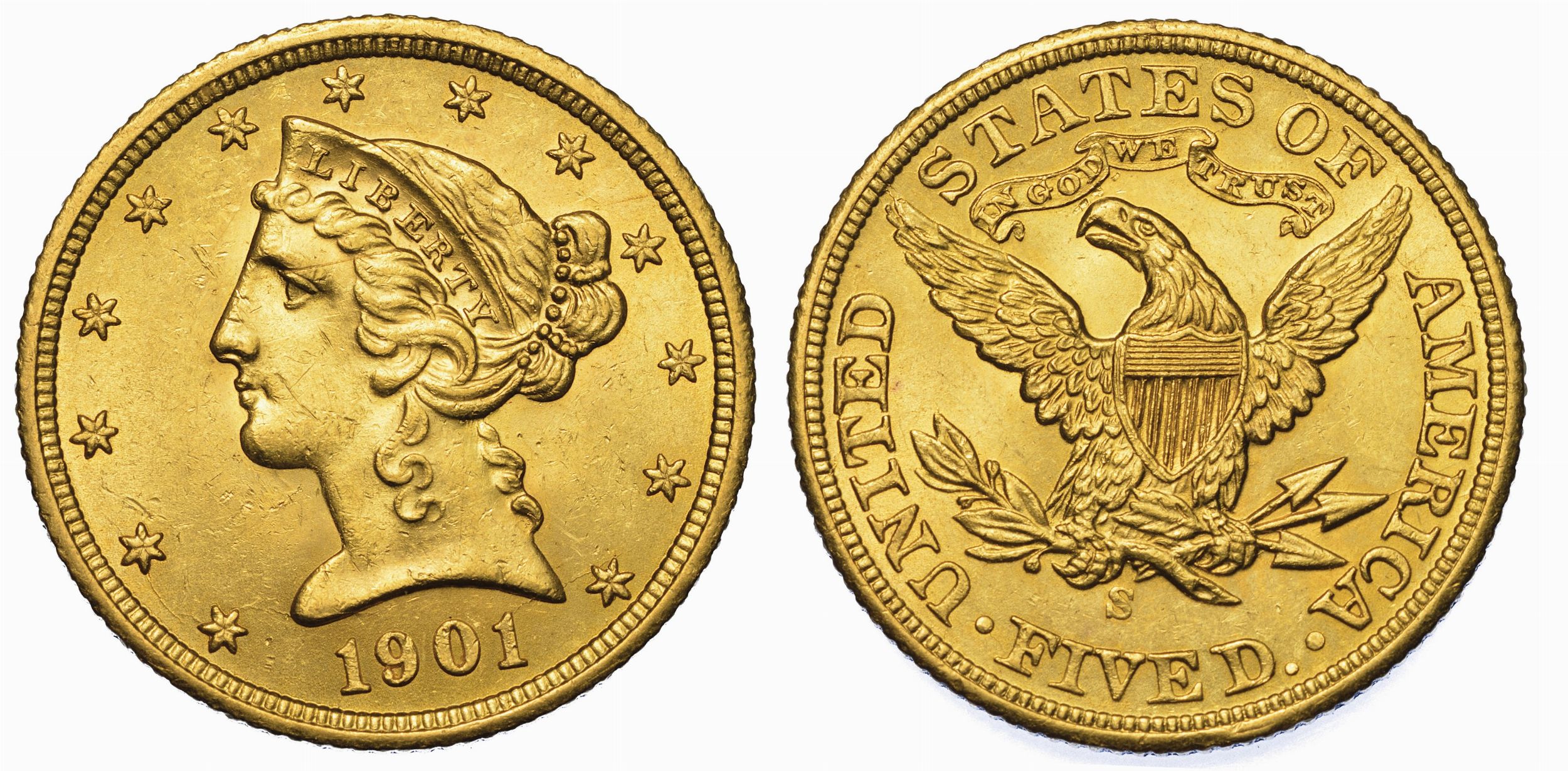 USA. REPUBLIC. 5 Dollars “Coronet Head” 1901. Zecca di San Francisco, California [..]
