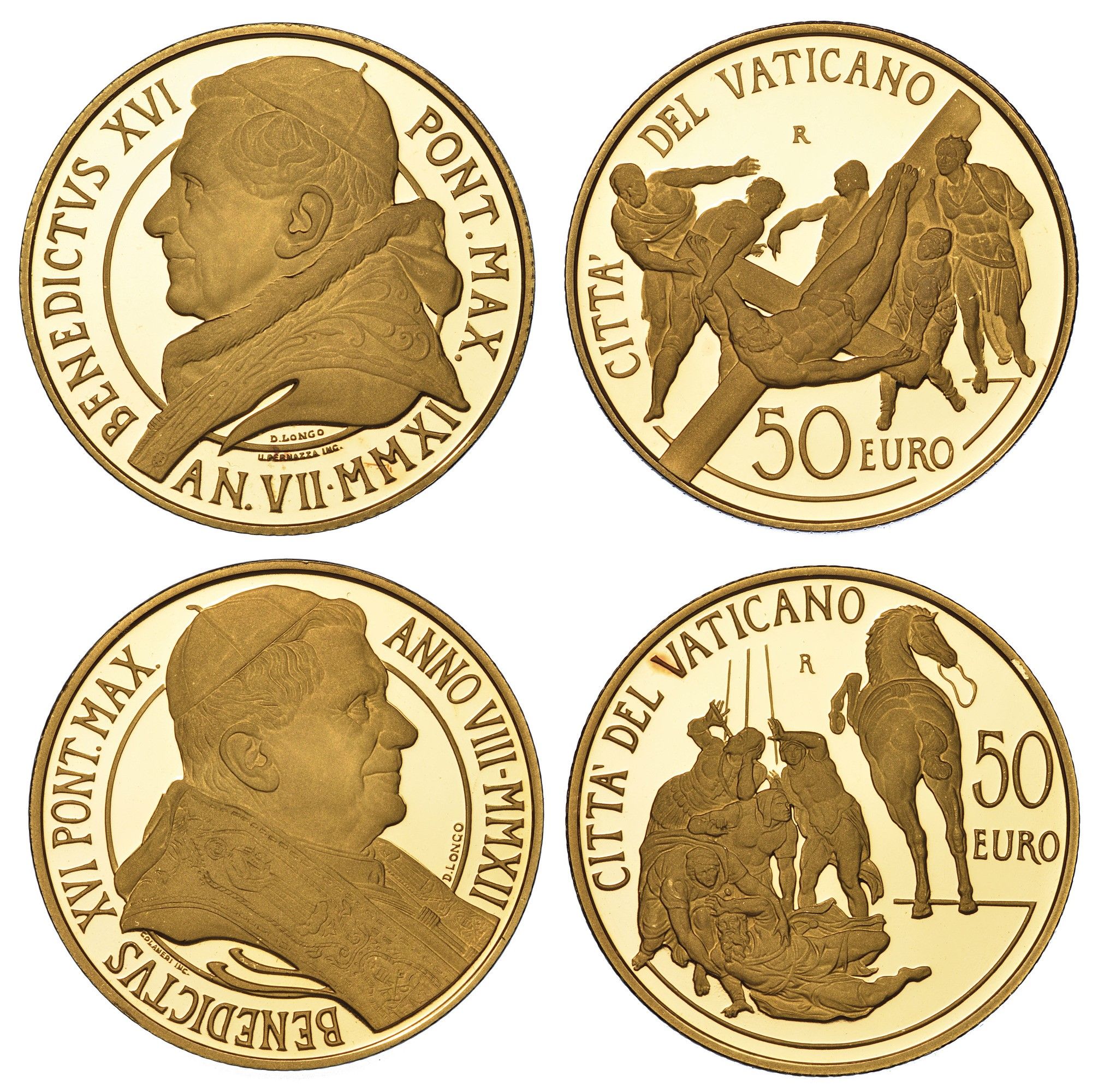 VATICANO. BENEDETTO XVI, 2005-2013. Lotto di due monete.