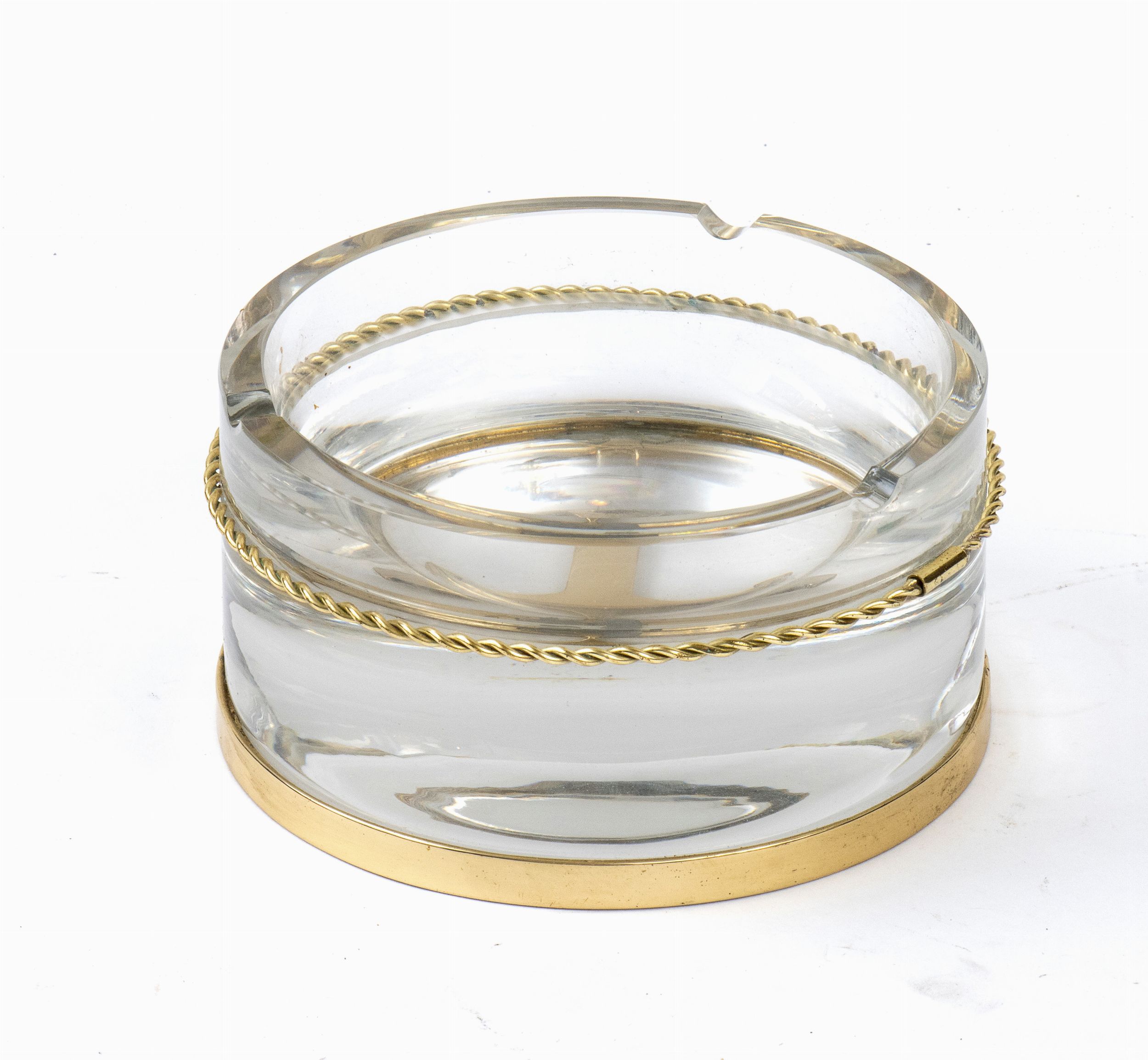 Posacenere in vetro con decoro di ancora e rifiniture in ottone.