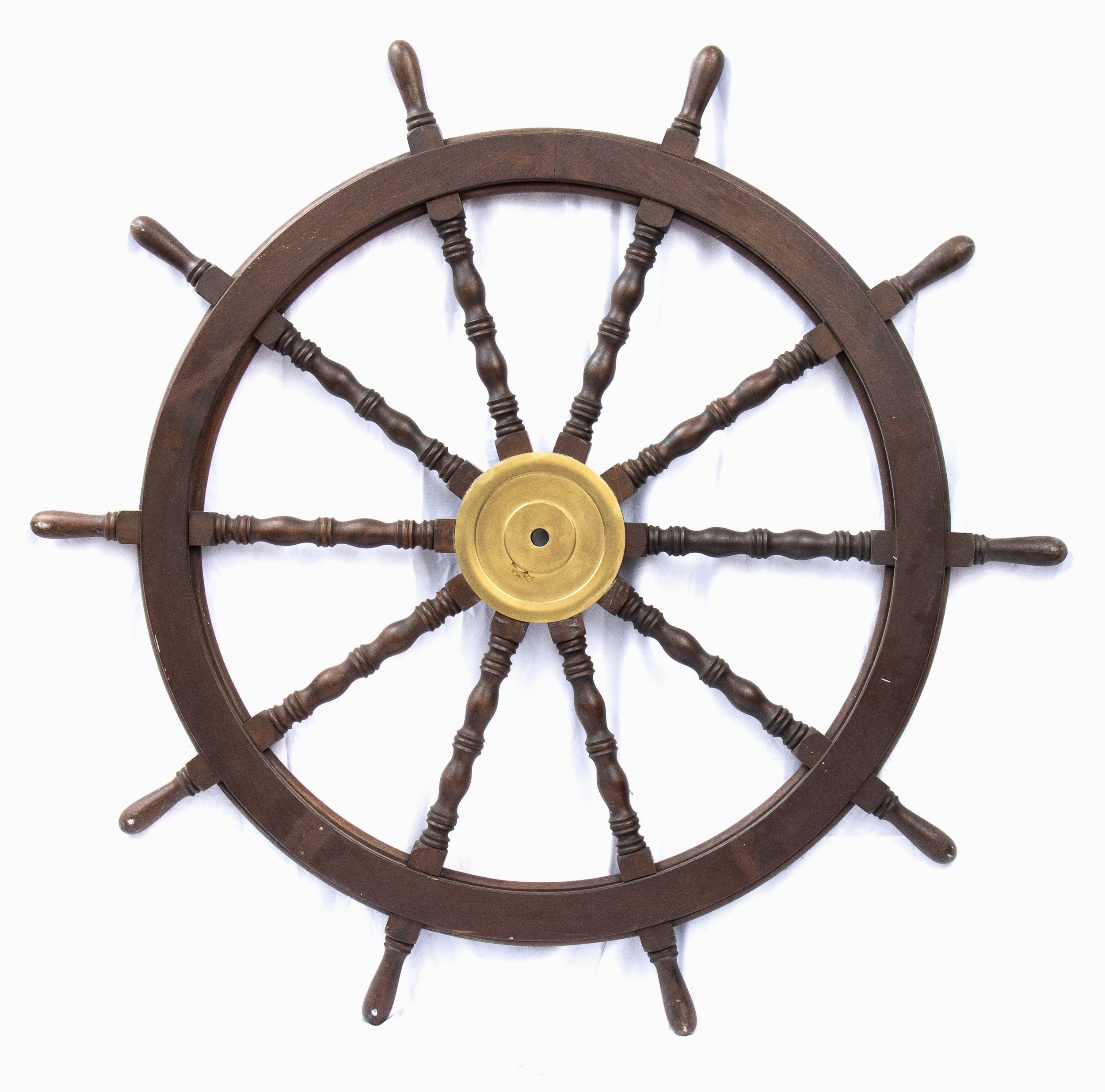 Timone navale a dieci raggi; parte centrale in ottone. Ottime condizioni.