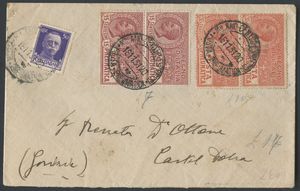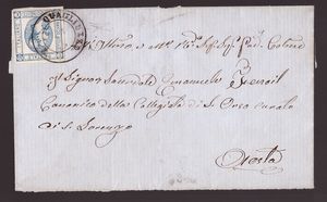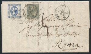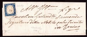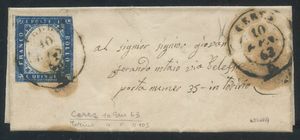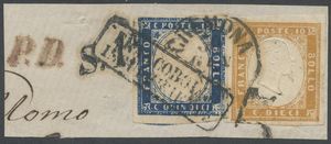 30.01.1863 - Frammento di lettera affrancato tramite Sardegna 10 cent. giallo ocra n.14Dd + regno 15 cent. litografico [..]