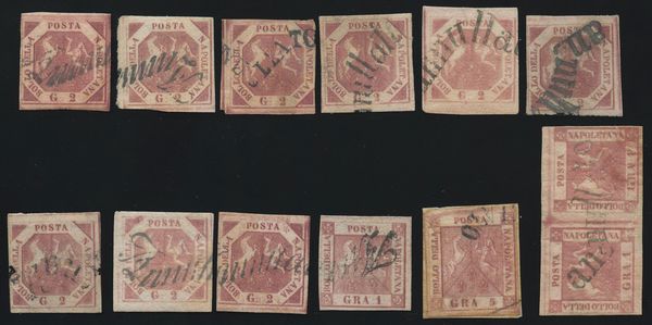 1858 - Splendido insieme di francobolli del regno di Napoli annullati con svolazzo, in media buona qualità . (A-/A/A+)