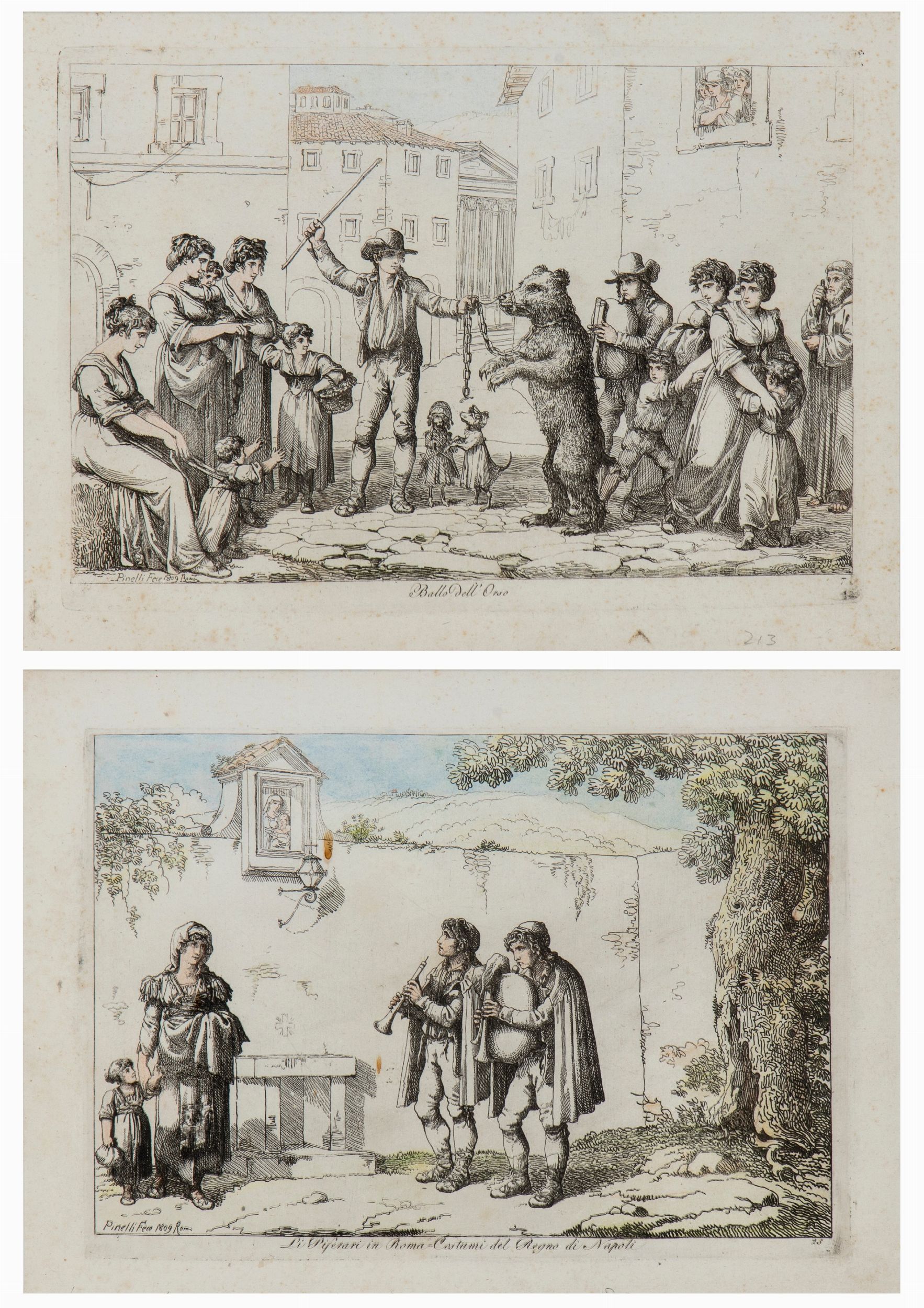 1809 Acquaforte, 210 x 306 mm ca. (lastra), 260 x 340 mm ca. (foglio). Impresse su vergata, alcune parti acquerellate a mano. In generale in buono stato ma le stampe non sono state esaminate fuori dalla cornici (36,5 x 45,5 x 1 cm cad.)
