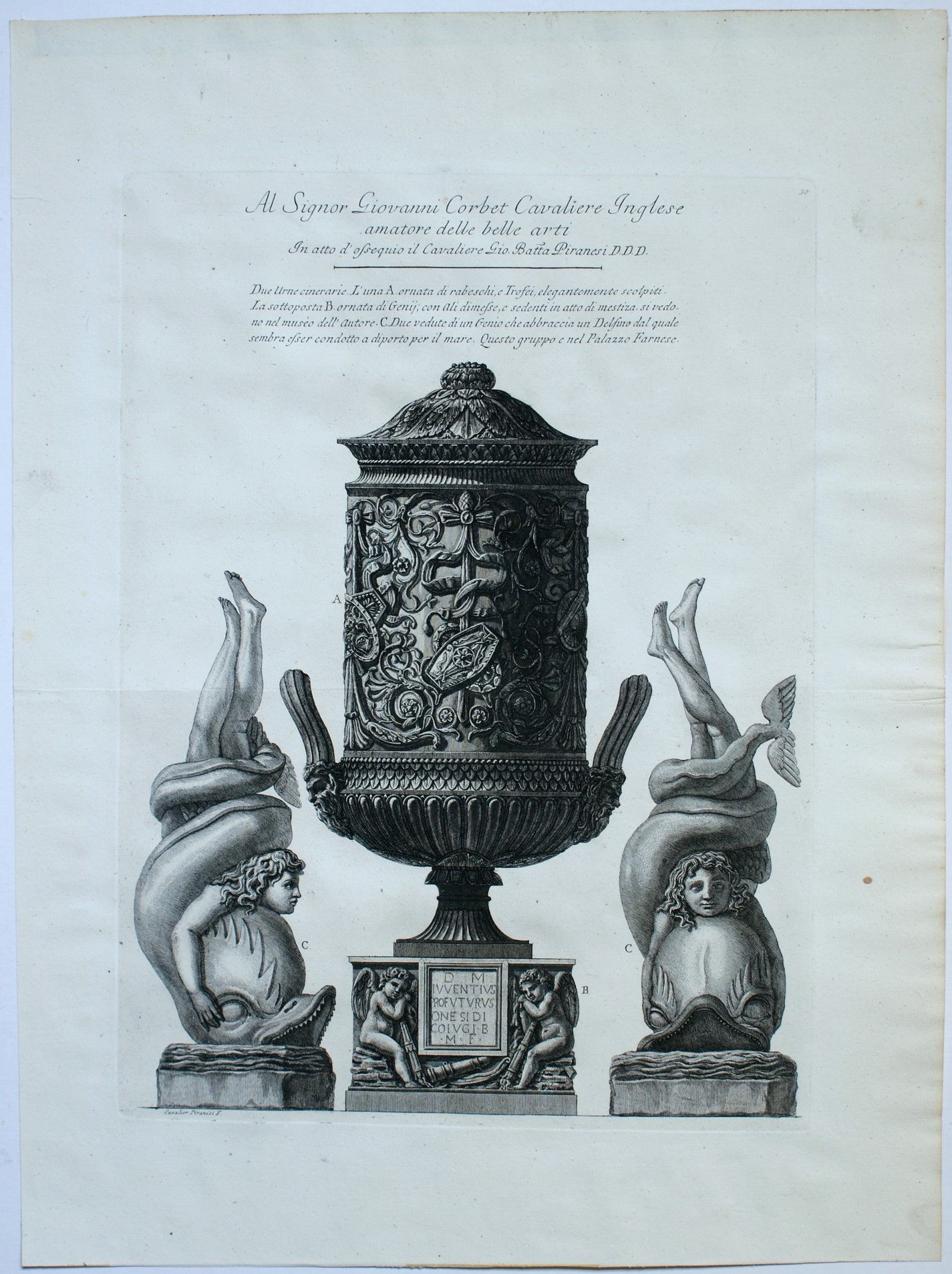 Acquaforte, 529 x 386 mm (lastra), 695 x 515 mm (foglio). Focillon 628, Wilton-Ely 915. Bell'esemplare in tiratura romana postuma, stampato su carta vergata con doppia filigrana (Grande Arme coronata e contromarca Bracciano). Foglio in ottimo stato di conservazione salvo consueta traccia di piega centrale orizzontale e alcuni resti di vecchia montatura al verso.