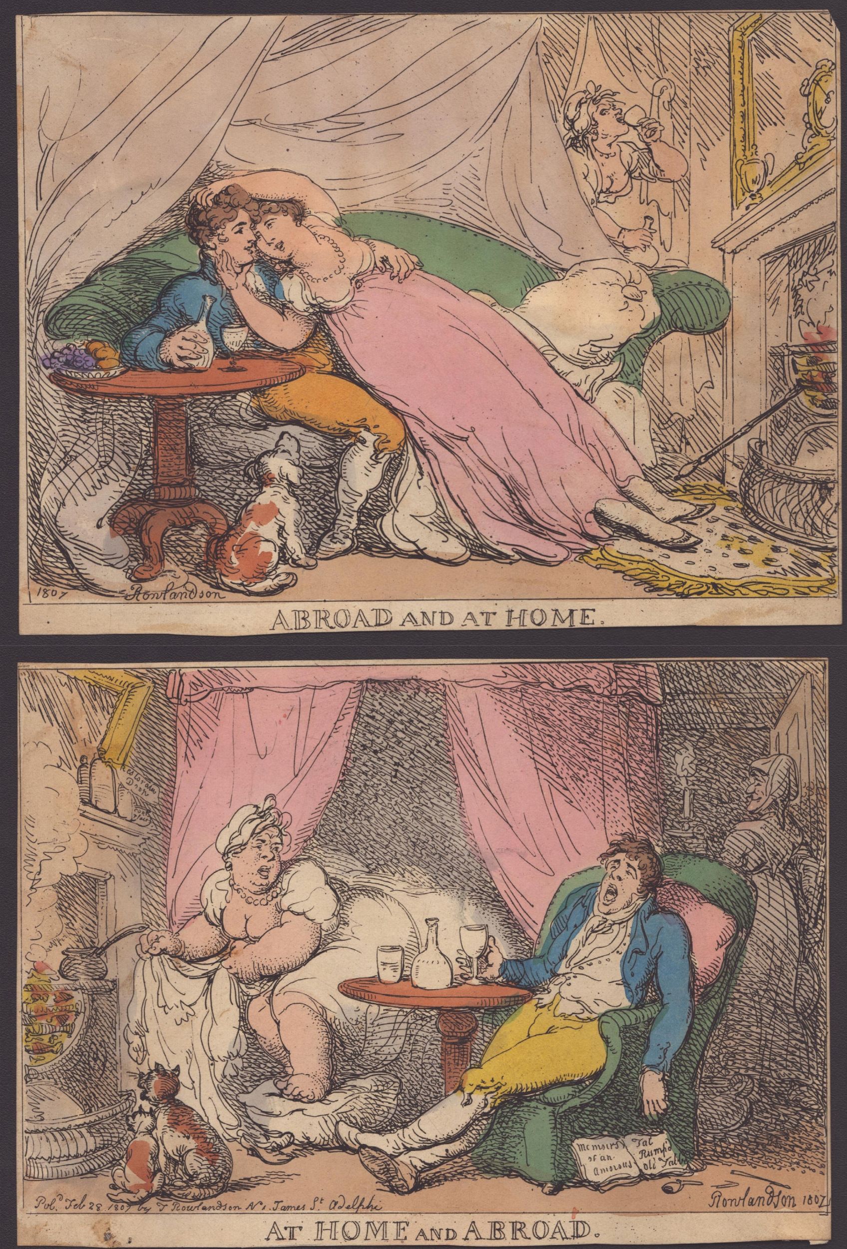 Acquaforte, 140 x 193 mm ca. (cad. pezzo). Incisione tagliata in due pezzi, stampata su carta non vergata con bella coloritura coeva. In buono stato di conservazione, salvo macchie da colla e residui cartacei al verso e leggere bruniture.