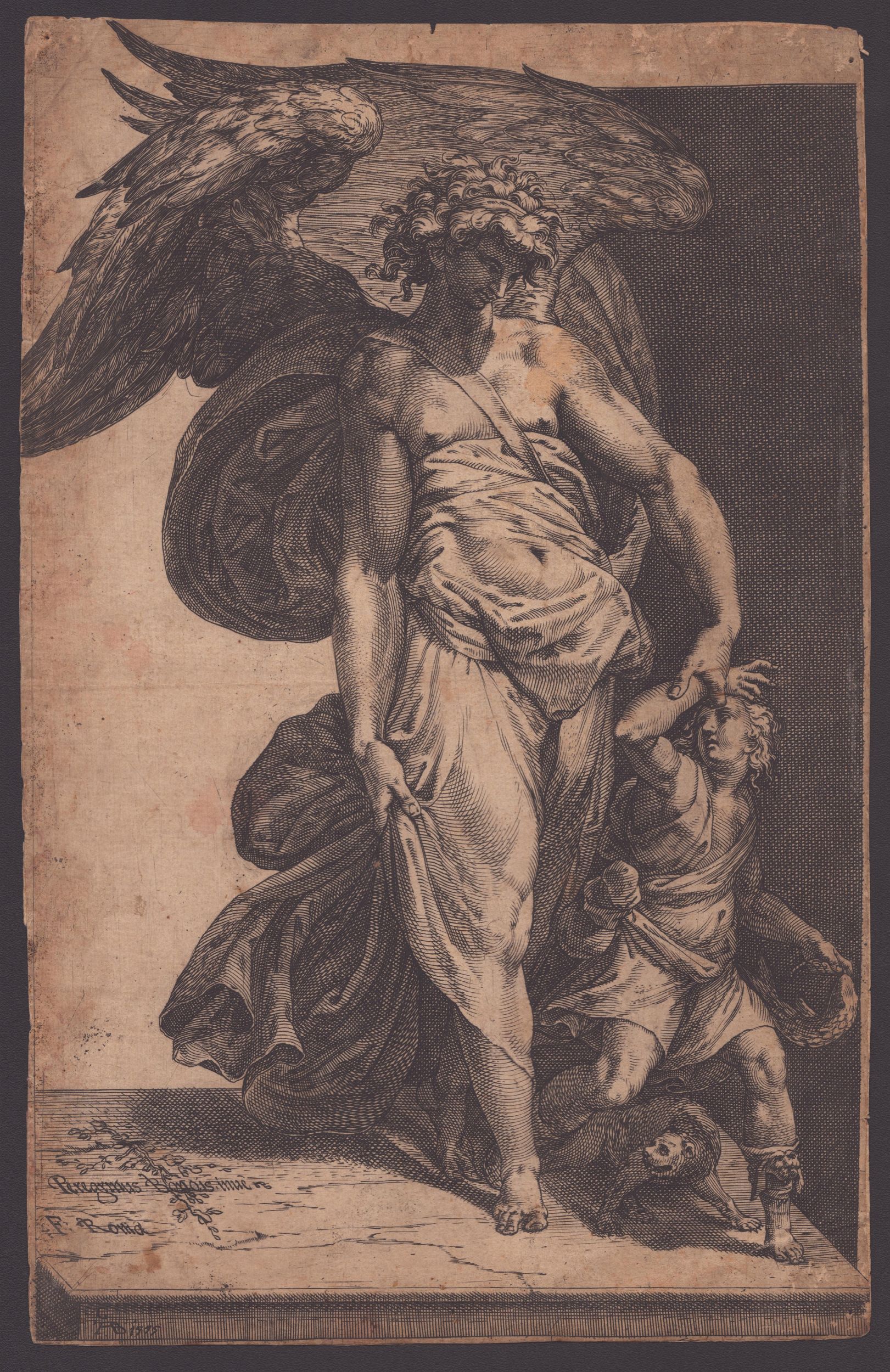 1575 da Pellegrino Tibaldi. Acquaforte, 311 x 197 mm. Stato prima dell'indirizzo di Van Aelst. Bartsch XVII.70.58 Bella impressione su carta vergata, esemplare rifilato e controfondato su un altro foglio di carta vergata. Carta uniformemente brunita con alcuni segni di usure (piccoli strappi, mancanza e pieghe).