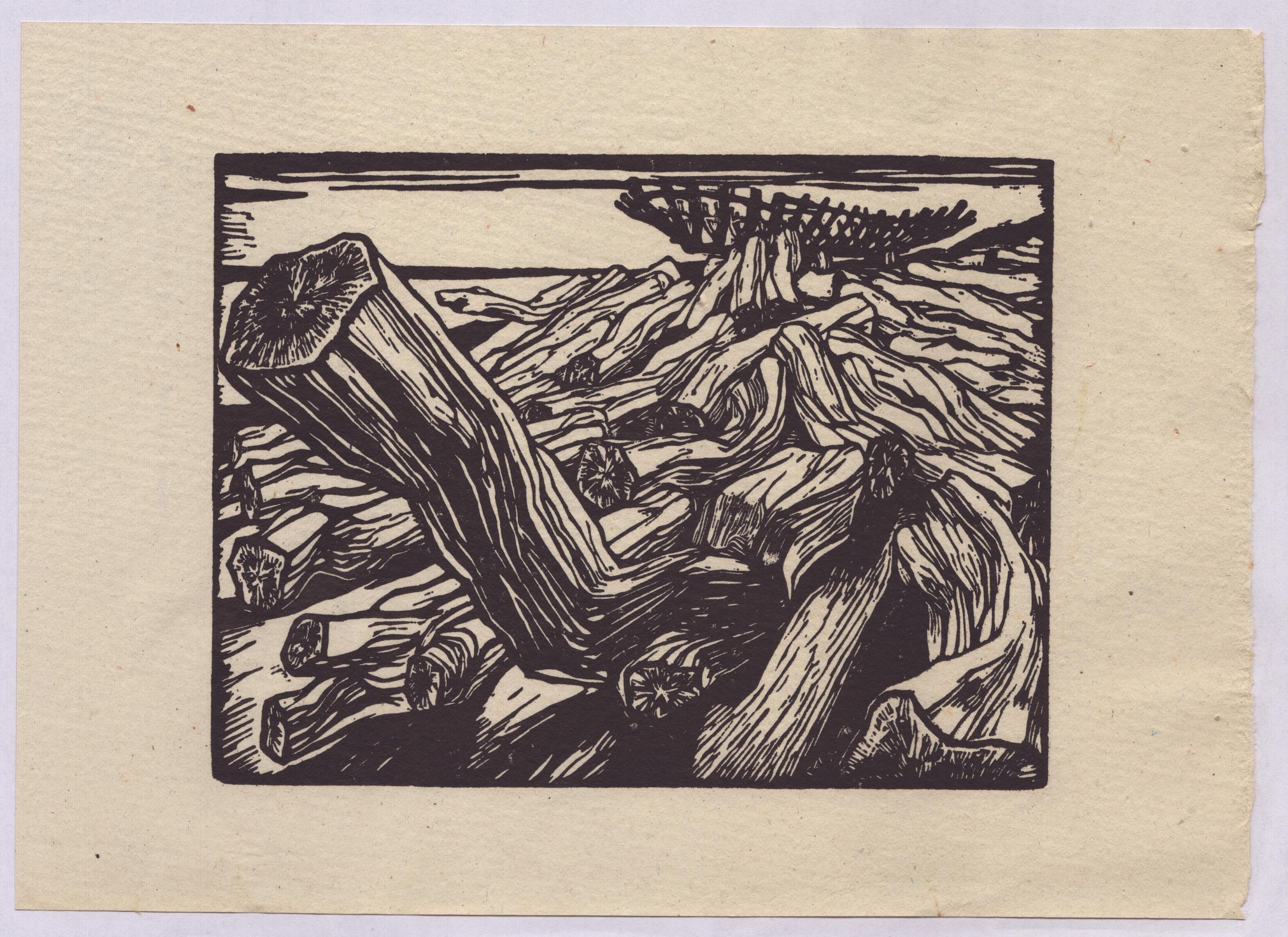 Xilografia, 110 x 145 mm (matrice), 155 x 215 mm (foglio). Tratta dalla rivista 'Ex Libris' (maggio-giugno 1960). Stampata su carta vergata moderna. Foglio in ottimo stato di conservazione ma incollato in 4 punti su un supporto. Con cornice (23 x 29 x 3 cm).