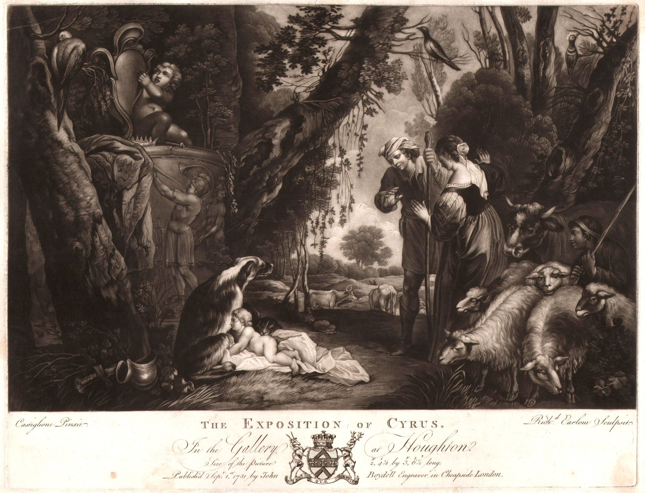 Lotto di due incisioni: a) Orpheus da Giovanni Benedetto Castiglione Mezzotinta, 283 x 369 mm lastra), 292 x 380 mm (foglio) b) The exposition of Cyrus da Giovanni Benedetto Castiglione Mezzotinta, 284 x 368 mm (lastra), 292 x 376 mm (foglio) Entrambe stampate e pubblicate a Londra da John Boydell nel 1781 e poi inserite nella raccolta dal titolo “A set of Prints engraved after the most capital Paintings in the Collection of her Imperial Majesty the Empress of Russia, lately in the possession of the Earl of Norfolk, at Houghton in Norfolk...”. Stupende, ricce impressione su carta vergata. Esemplari con piccoli margini di circa 5 mm. In ottimo stato di conservazione generale.