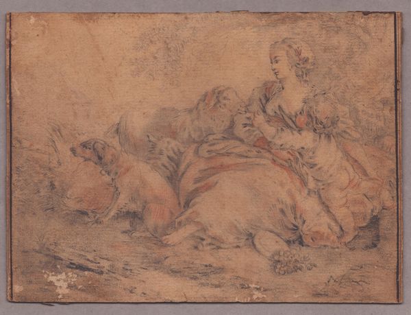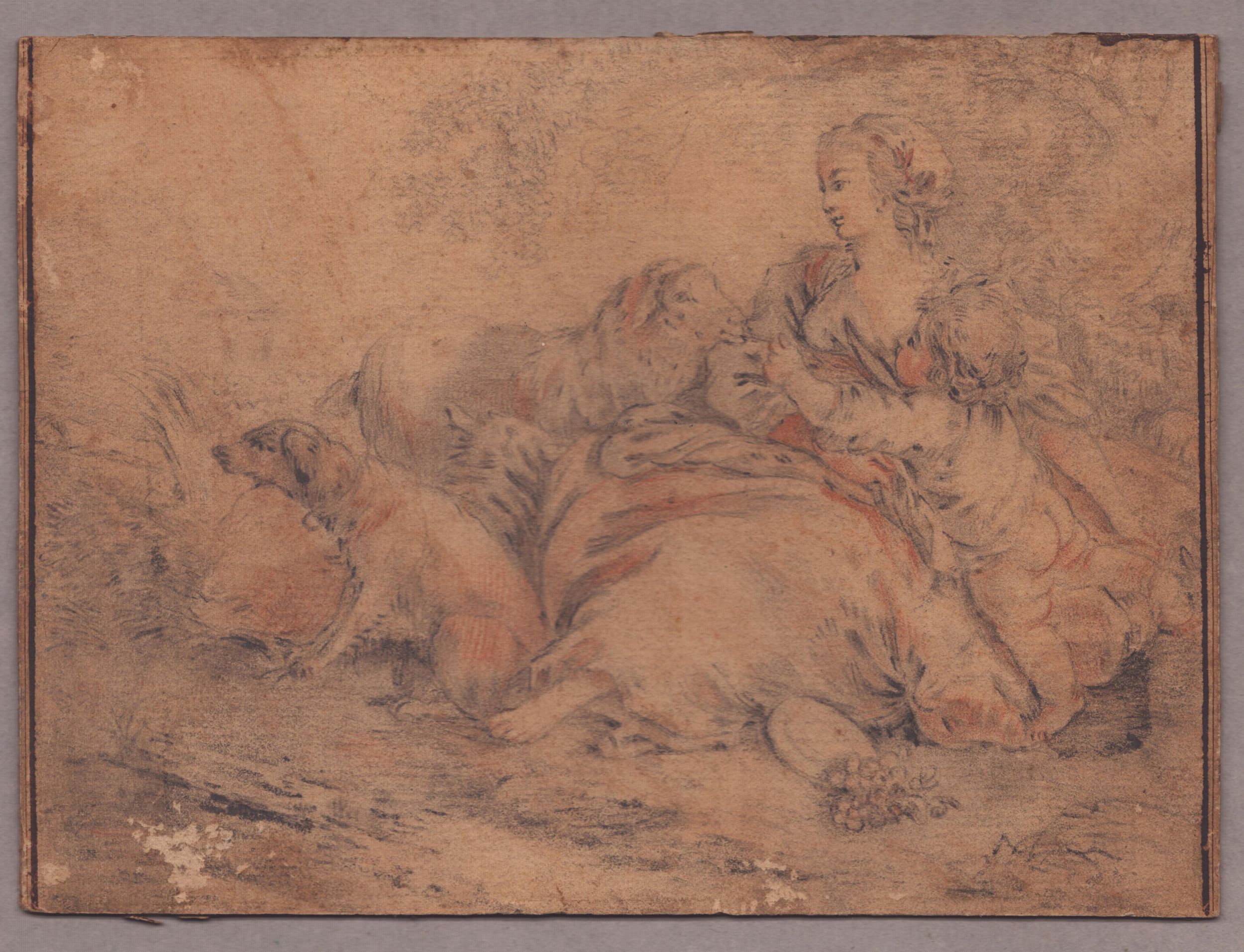 artista francese del XVIII secolo Sanguigna e matita su carta, 131 x 180 mm. Esemplare controfondato