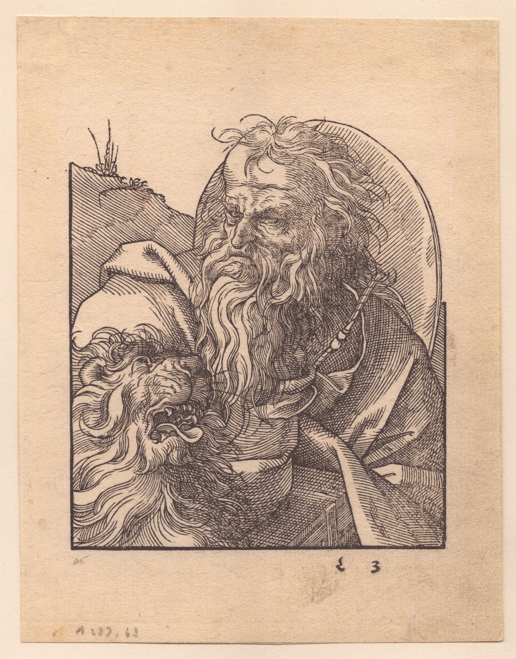 Xilografia, 159 x 122 mm (foglio). The New Hollstein German 138.61. Bella impressione su carta vergata sottile con un frammento di filigrana (leone). Foglio in ottimo stato di conservazione, applicato in due punti su un passe-partout moderno.