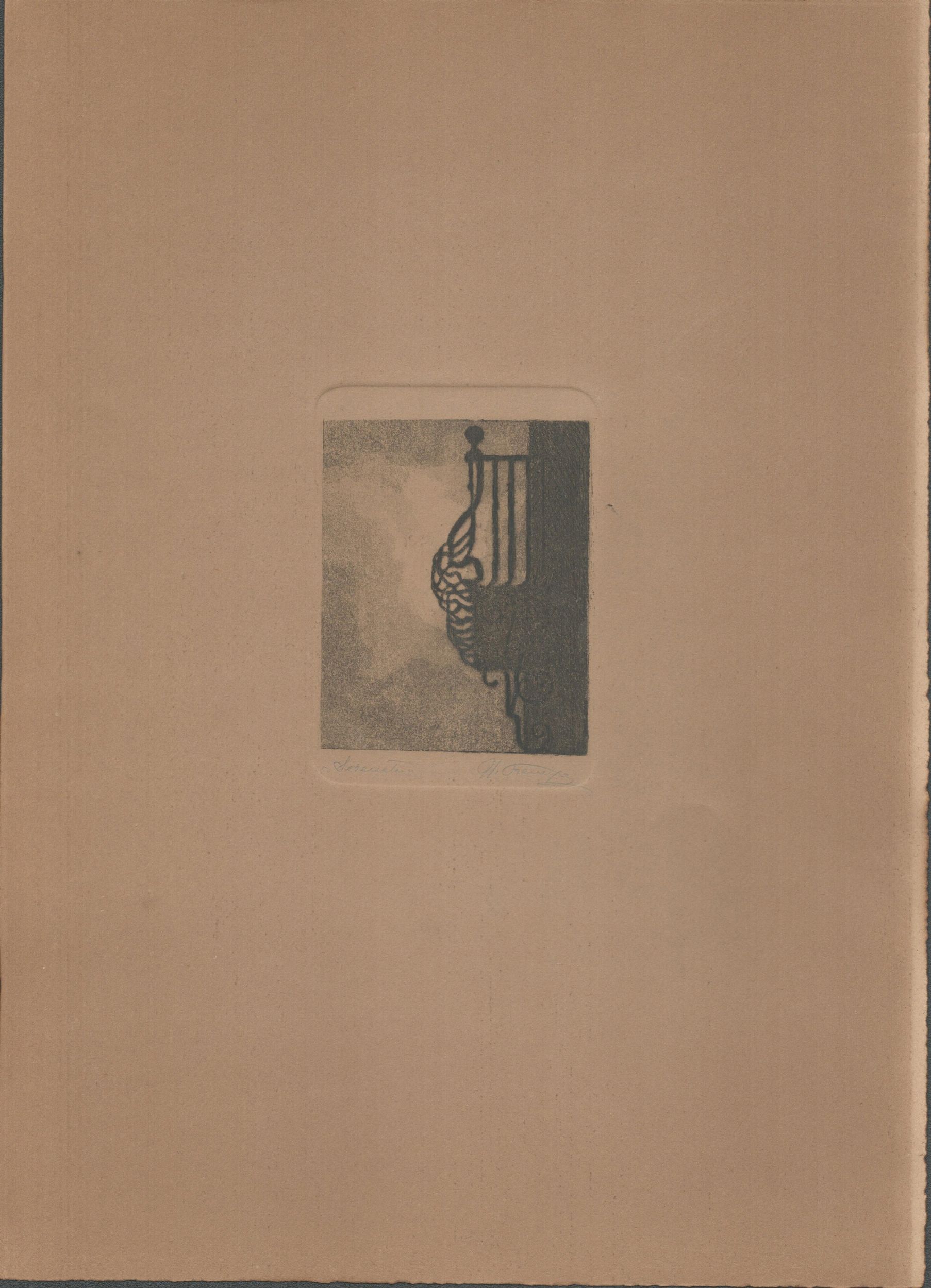1906 Acquaforte e acquatinta, 110 x 760 mm (lastra), 350 x 245 cm (foglio). Firmata e titolata a matita. Stampata su carta bruna. Foglio in ottimo stato. Con cornice e vetro (43 x 32 x 2 cm). La stampa non è stata esaminata fuori dalla cornice.