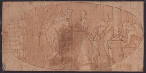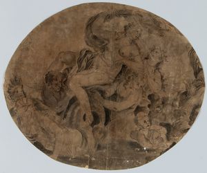 Scuola Italiana del XVII secolo Penna, inchiostro bruno su carta vergata marroncina ritagliata in ovale