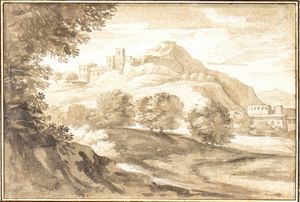 Inchiostro bruno, penna e acquarello su carta, 130 x 191 mm (foglio), 200 x 260 mm (passe-partout). Foglio controfondato [..]