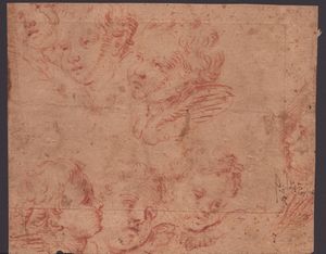 Artista italiano del XVII secolo Sanguigna su carta vergata (al verso frammento di un'incisione), 167 x 204 mm [..]