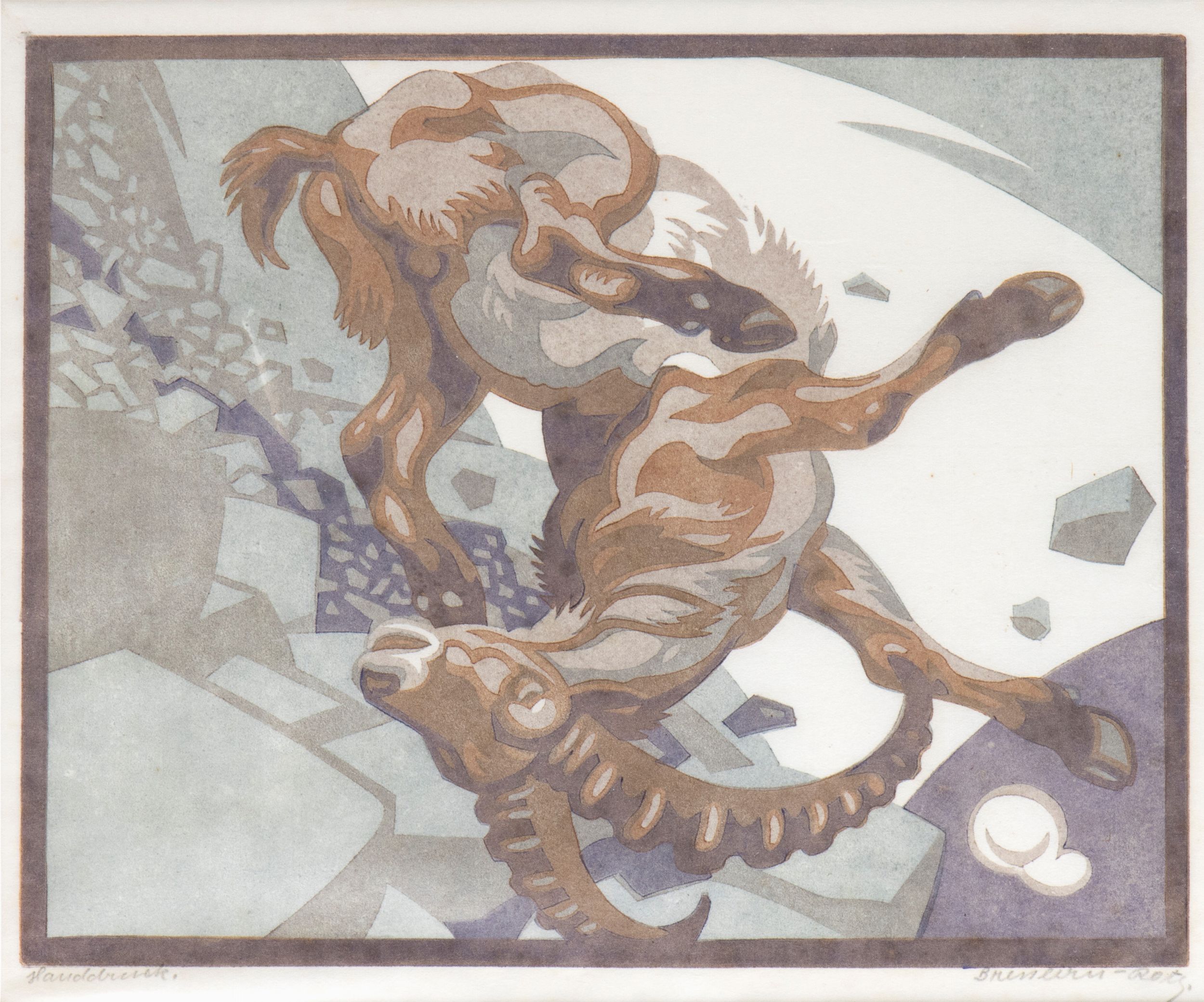 1922 Lineografia a colori su carta, 198 x 250 mm ca (matrice). Firmata a matita, 'handdruck' (prova d'artista). Bellissima impressione, ottimo stato. Con passepartout, cornice e vetro (42 x 46 x 2 cm). La stampa non è stata esaminata fuori della cornice.