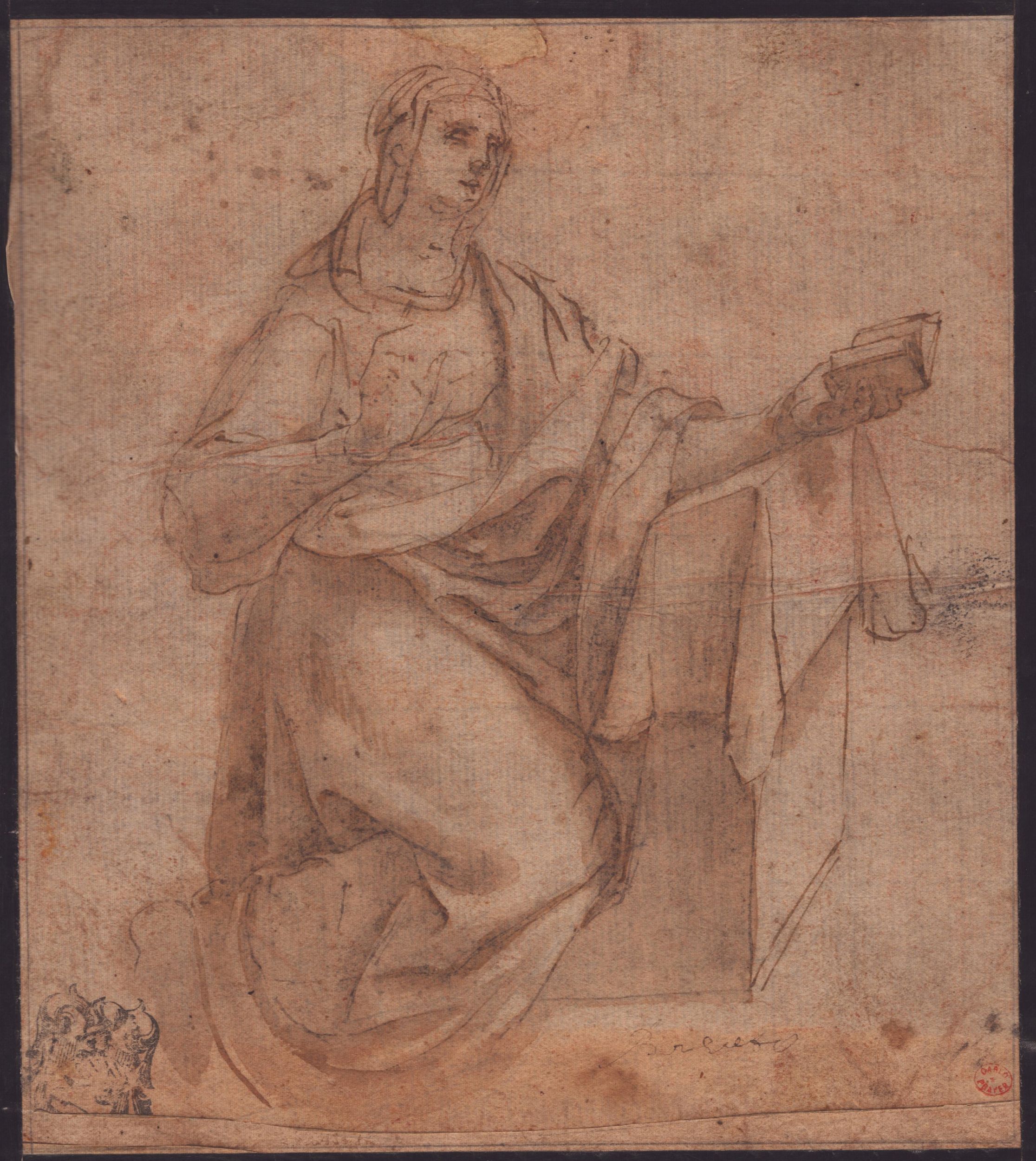 Scuola lombarda o emiliana del XVI secolo Penna, inchiostro bruno, acquarello e tracce di sanguigna su carta vergata, 170 x 150 mm. Marchi da collezione di Pacini (ca. 1860-1880) (L.2011) e Carlo Prayer (L.2044)