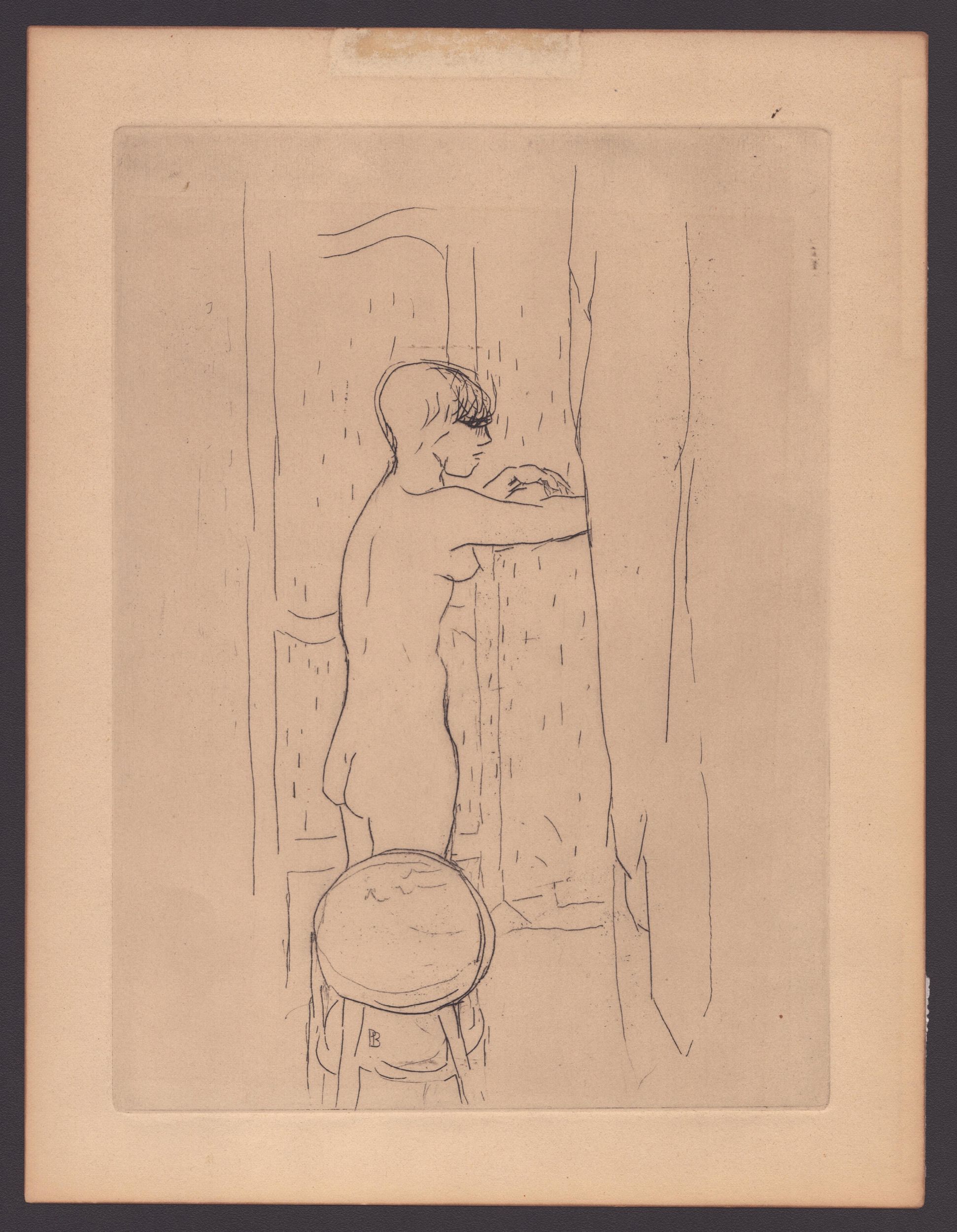 1927 Acquaforte, 217 x 158 mm (lastra), 260 x 200 mm (foglio). Fresca, nitida impressione con leggero plate-tone su carta non vergata. Foglio brunito al verso, mentre al recto presenta una macchia dal scotch sul margine superiore.