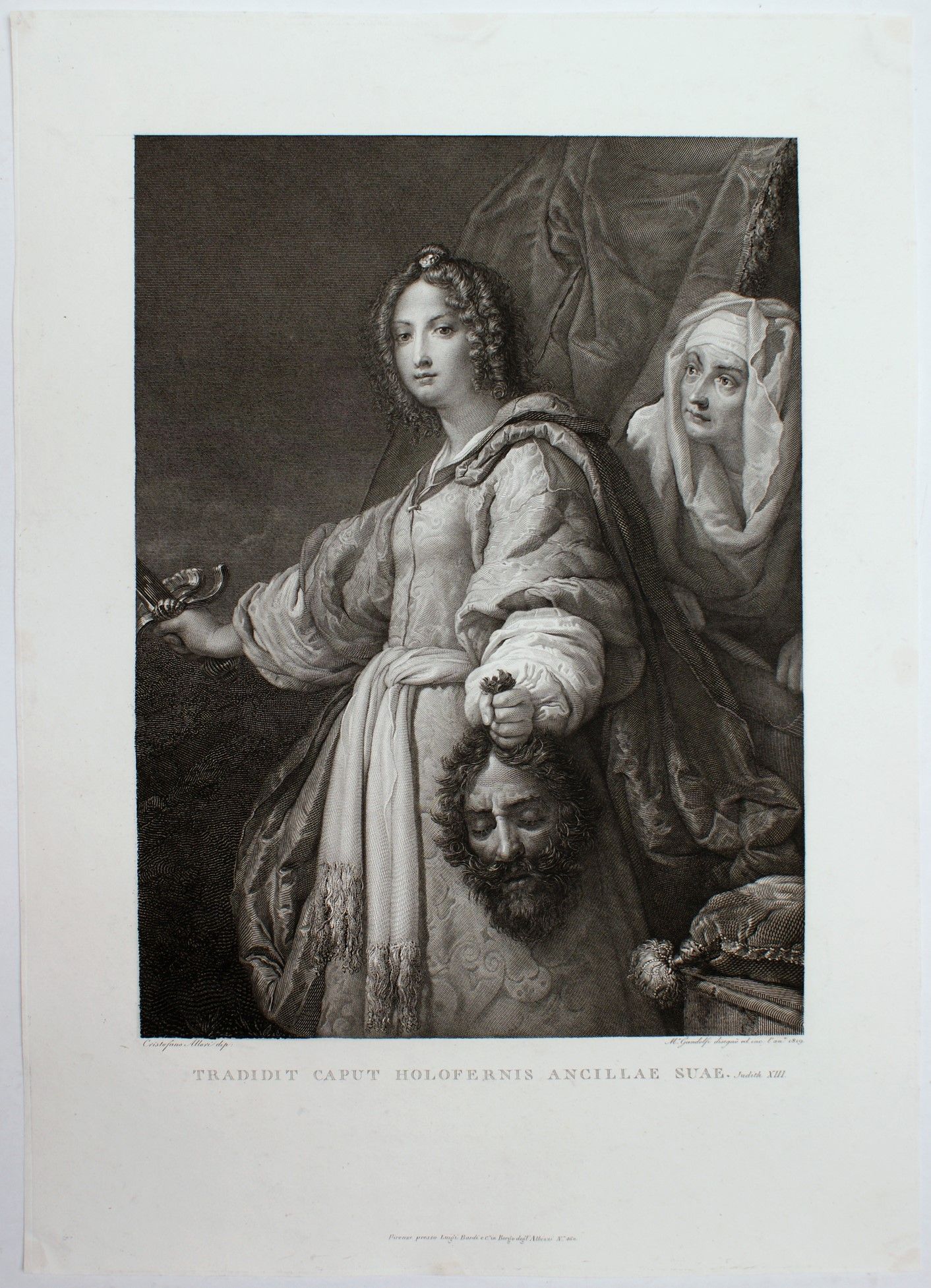 dal dipinto di Cristofano Allori detto il Bronzino oggi nella Galleria di Palazzo Pitti a Firenze.  Acquaforte, 523 x 372 mm. Stato IV su 4. Gozzi 35,  LeBlanc 1.