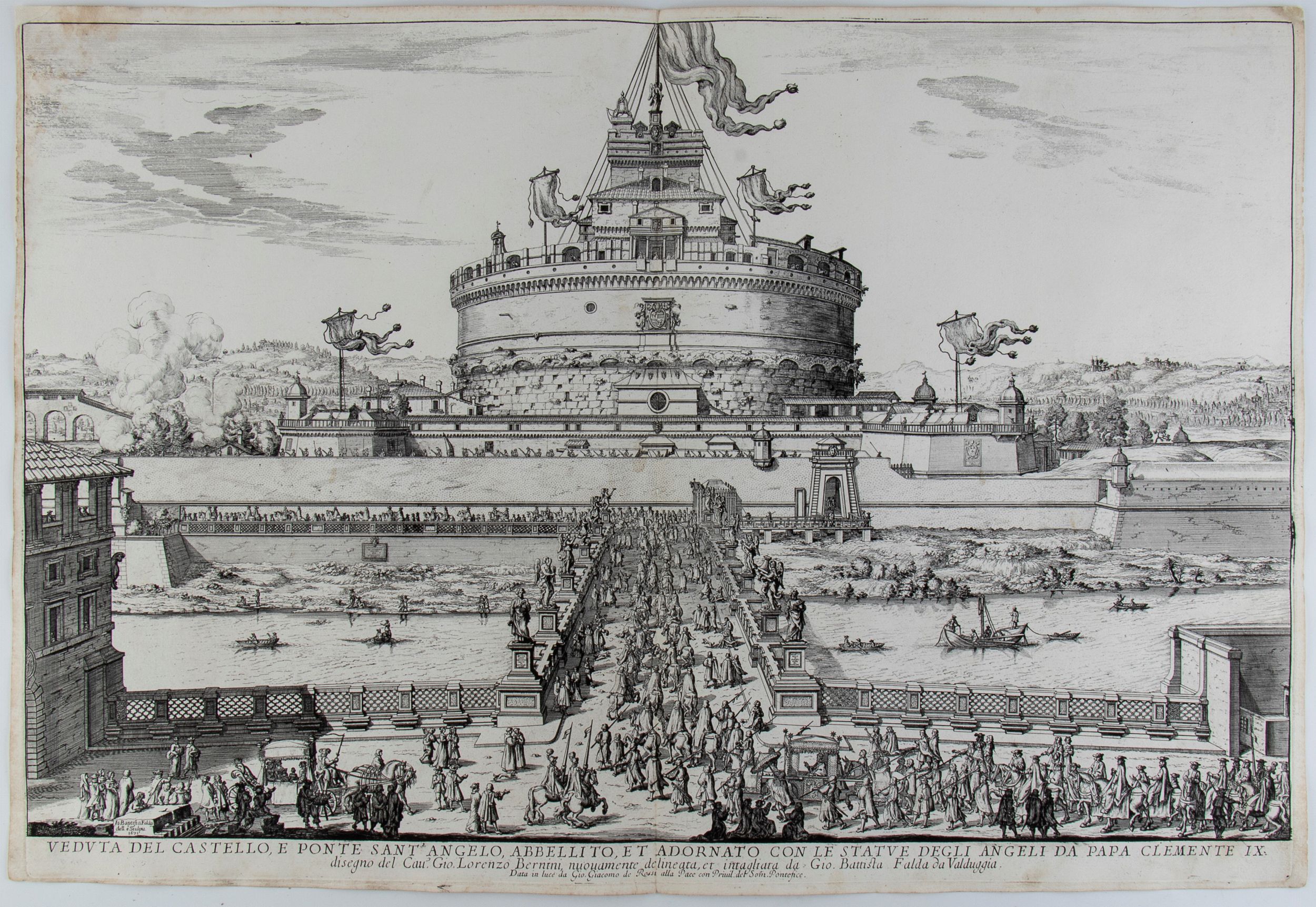 Veduta del Castello, e Ponte Sant'Angelo, abbellito, et adornato con le statue degli [..]