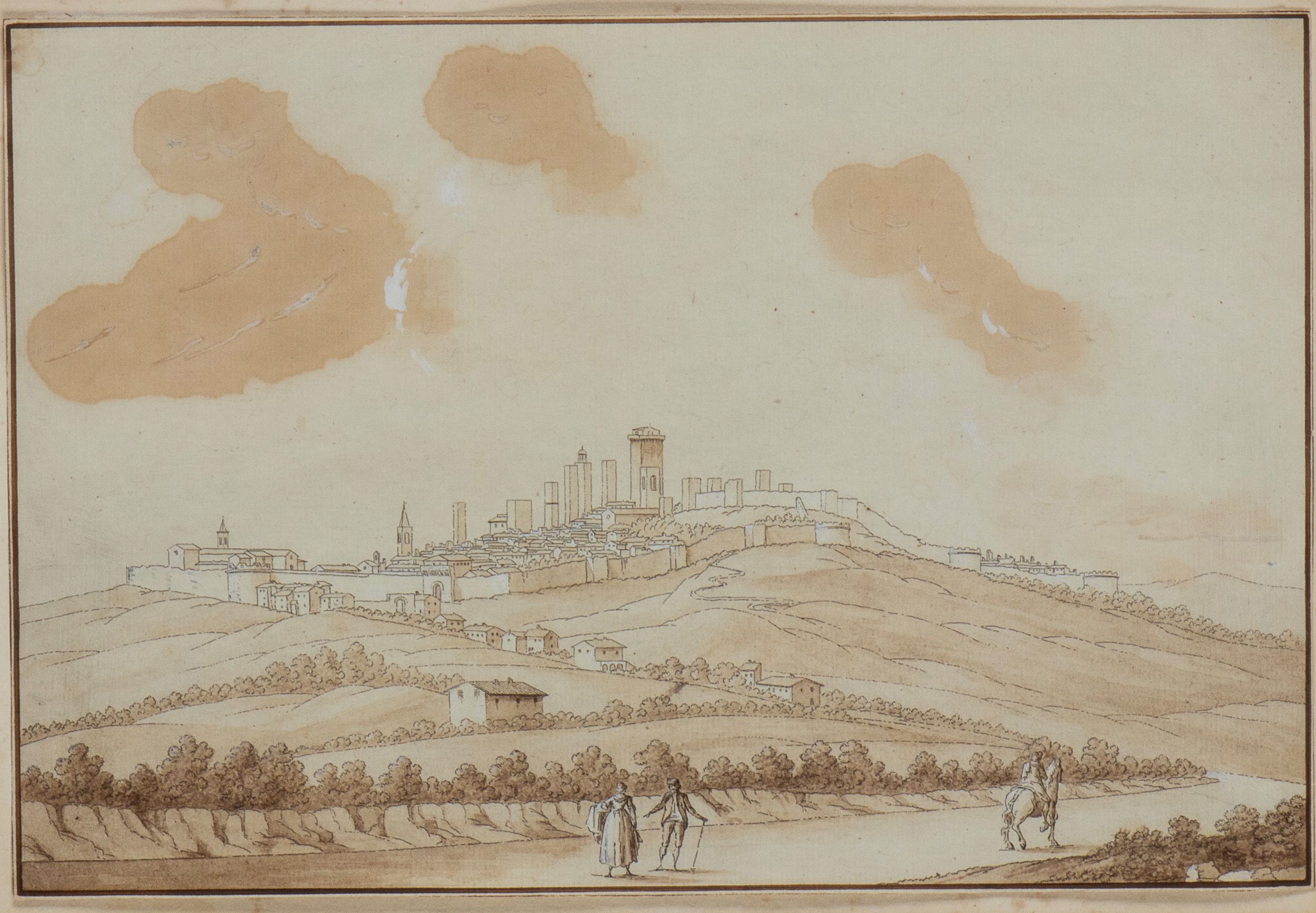fine XVIII-inizi XIX secolo Inciostro bruno, penna e acquarello su carta. 230 x 340 mm. Con passe-partout coevo e cornice (62 x 87 x 3 cm)