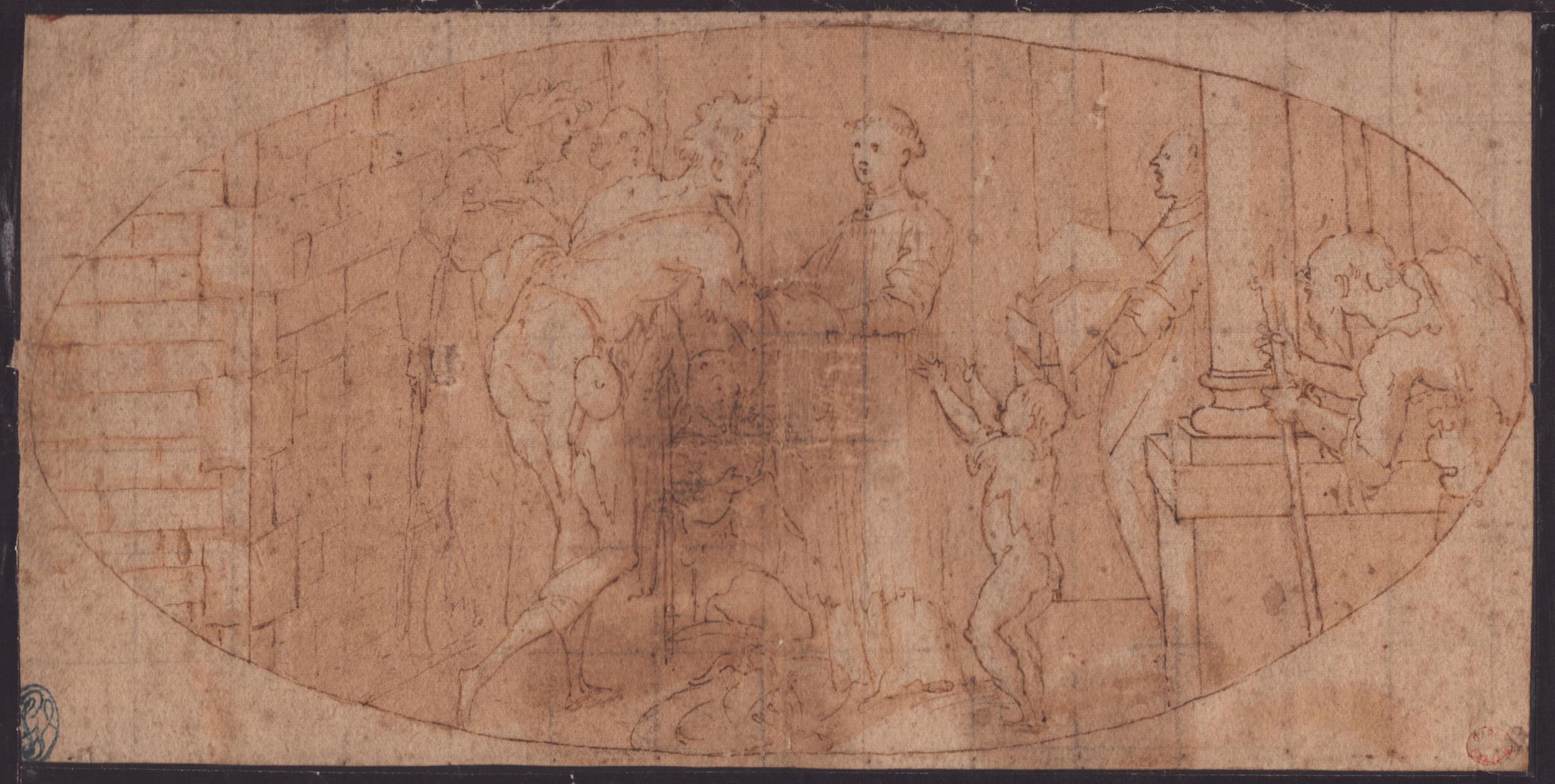 Penna ed inchiostro su carta vergata, tracce di matita, 96 x 185 mm. Con marchi da collezioni di Giuseppe Vallardi (L.1223) e di Capitaine C. Prayer (L.2044).
