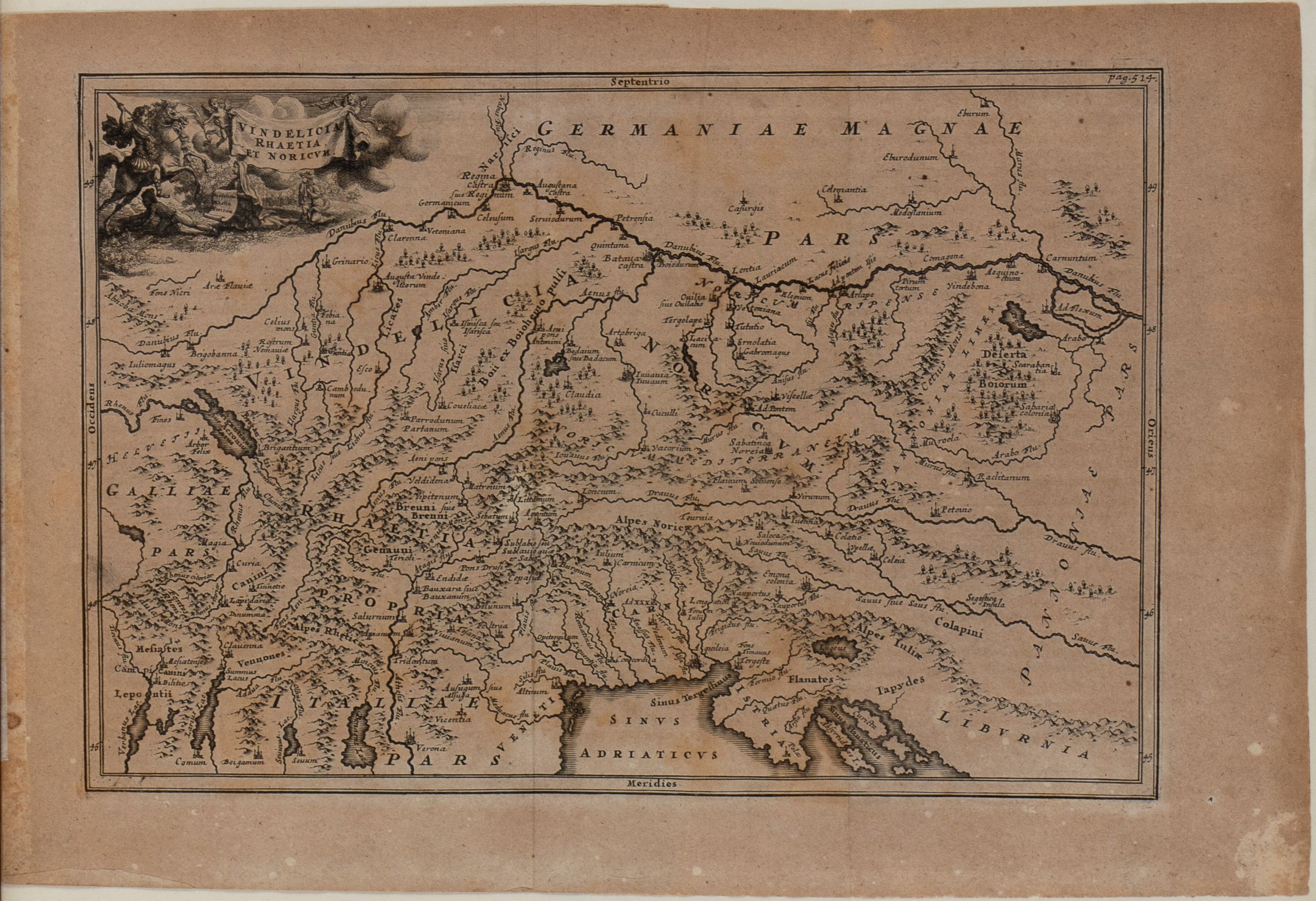 Acquaforte e bulino, 255 x 375 mm. Mappa del territorio dell'attuale Austria e Ungheria, tratta da 'Notitia orbis antiqui sive geographia plenior' Foglio brunito, non è stato esaminato fuori cornice(34 x 42 x 1 cm).
